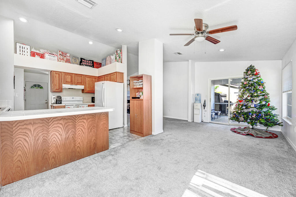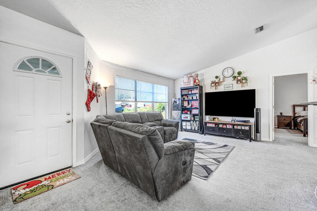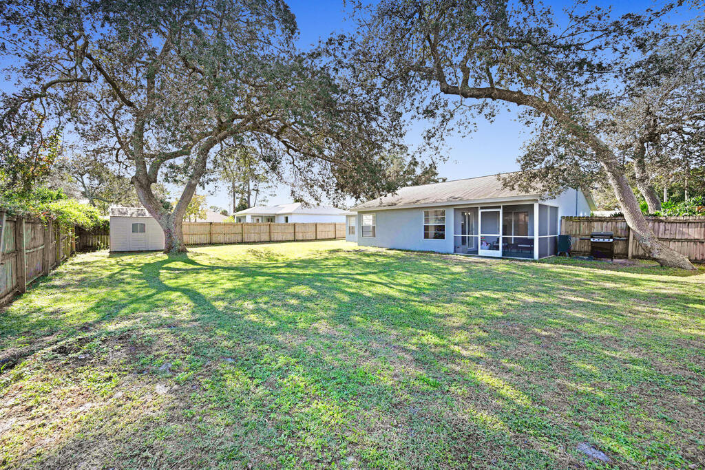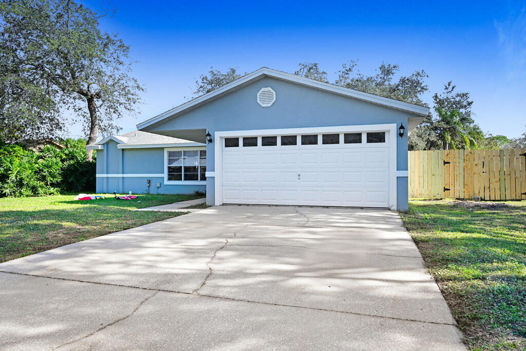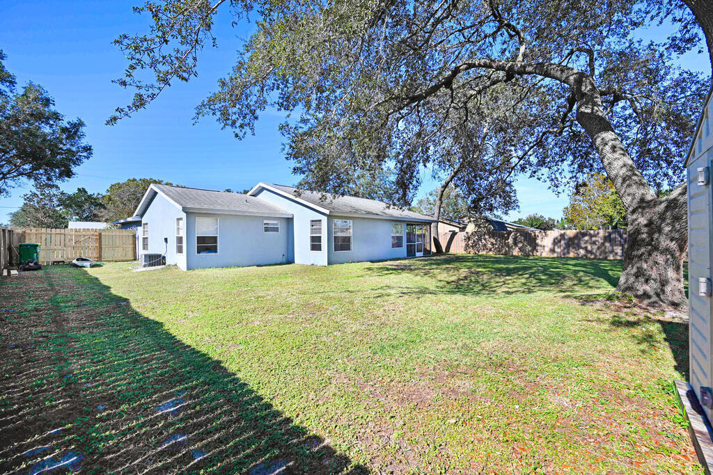 Welcome to your new home! This charming residence features 3 bedrooms, 2 bathrooms, and a host of desirable amenities. The spacious interior boasts vaulted ceilings, creating an airy and open atmosphere. The heart of the home is the kitchen, complete with a convenient breakfast bar for casual dining. The master bedroom is a true retreat with its own private shower, large walk-in closet, and double sinks. The split bedroom plan ensures privacy and comfort for everyone in the household. Indoor laundry room for added conveneince, 2 car garage for ample parking and storage, fully fenced in backyard with shed for extra storage! Upgraded with a newer roof, septic, and drainfield for peace of mind! This home offers easy access to shopping, Kennedy Space center, Orlando airport and attractions.