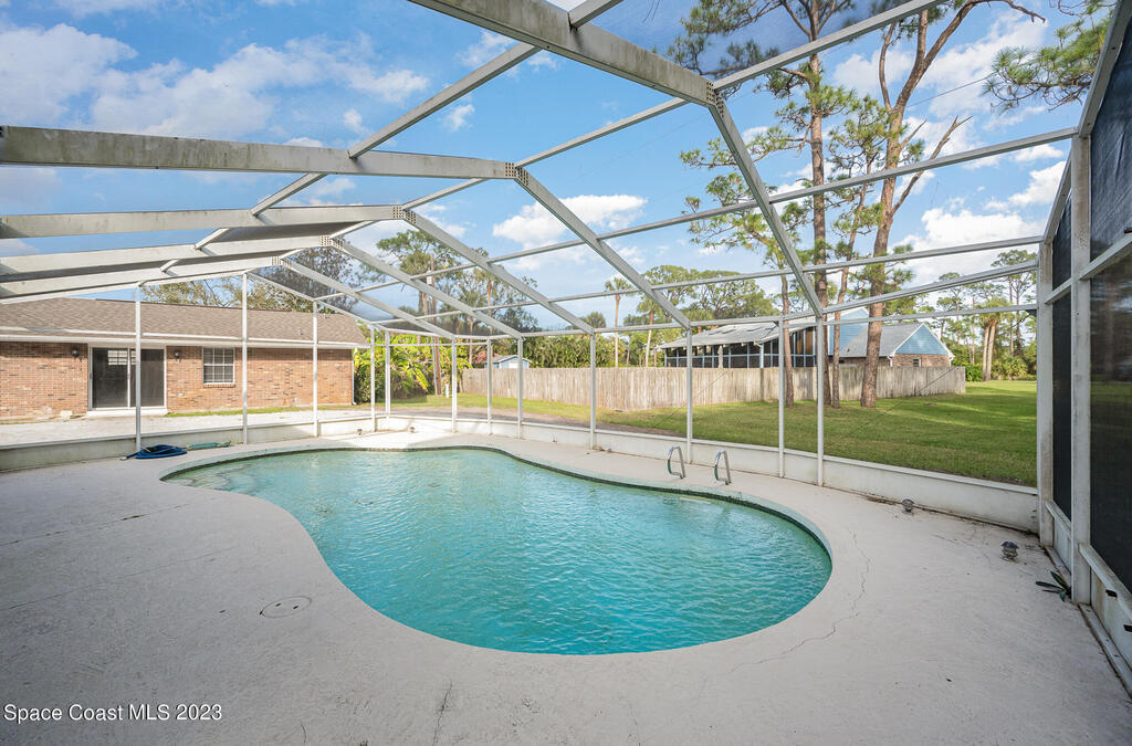 Fabulous opportunity to own in Brevard County on half acre lot! You'll be sold the minute you drive down the street! Wow! Every home is meticulously maintained and just beautiful! Home offers lots of living space and large bedrooms, plus a pool house/guest house and pool with lanai. Generous parking with two 2-car garages and lots of exterior parking as well. There's a new roof, new well and all new septic system installed, so no major components to be concerned about. If you want to entertain, this is the place! Kitchen is open to the hearth room, which opens to the screened patio, which opens to the lanai enclosed pool. And, the pool house/guest house offers a full bath and kitchenette. SO much to offer here! Welcome to your Home Sweet Home!!