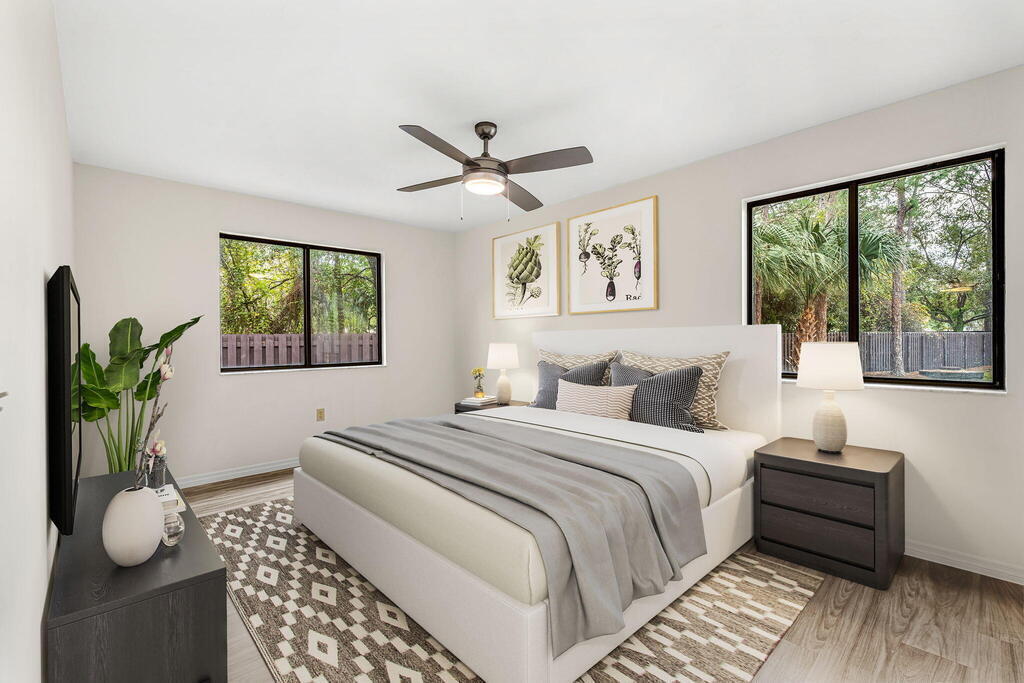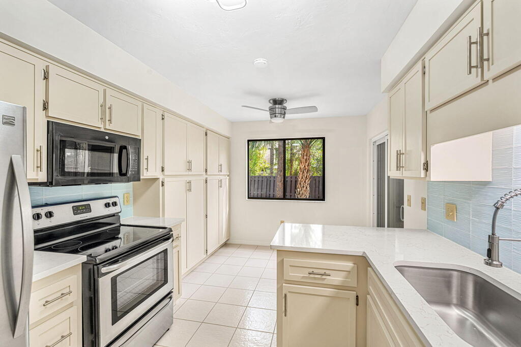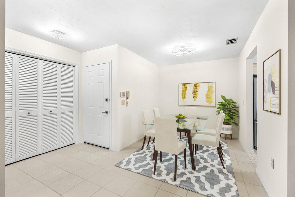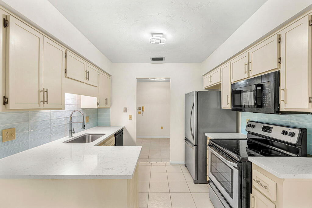 Fetching 1st-floor condo delightfully updated w/NEW plumbing, a NEW water heater, knock-down ceilings, fresh interior paint, an updated kitchen, upgraded baths & durable solid surface flooring! Tile & vinyl floors span the easy-flow great room plan. A slider off the living & dining spaces leads to a breezy porch overlooking leafy greens. The kitchen exhibits stone counters, white cabinetry, stainless steel appliances & a charming breakfast nook. Featuring a walk-in closet & a tiled shower bath, the primary suite is a comfortable retreat. The extra bedrooms & separate tub/shower bath offer ample accommodations for guests. Handy interior laundry room w/washer & dryer. 1-car garage included! Enjoy the community pool, tennis cts, gym, sauna & hot tub! Everyday conveniences & I-95 nearby!