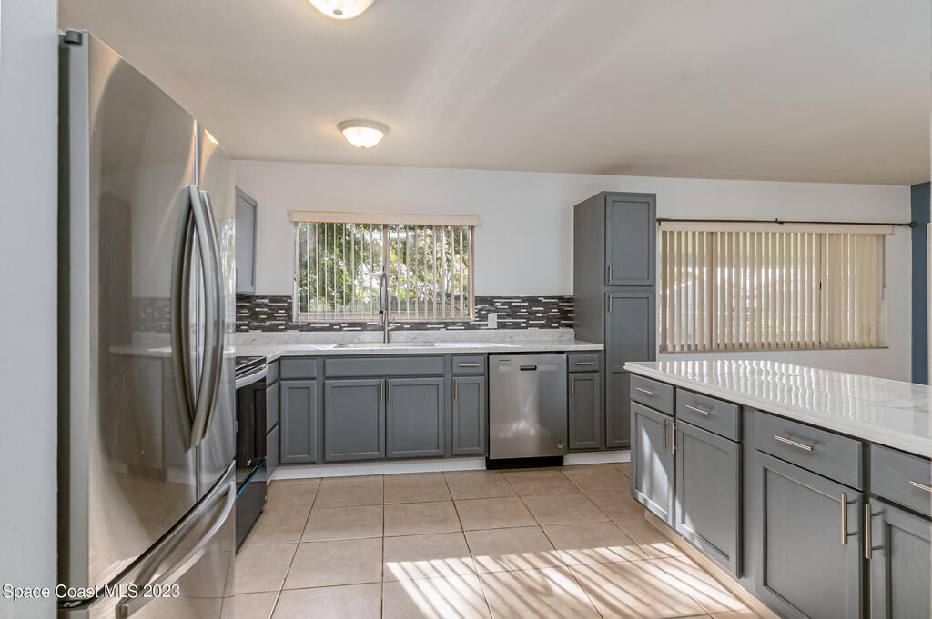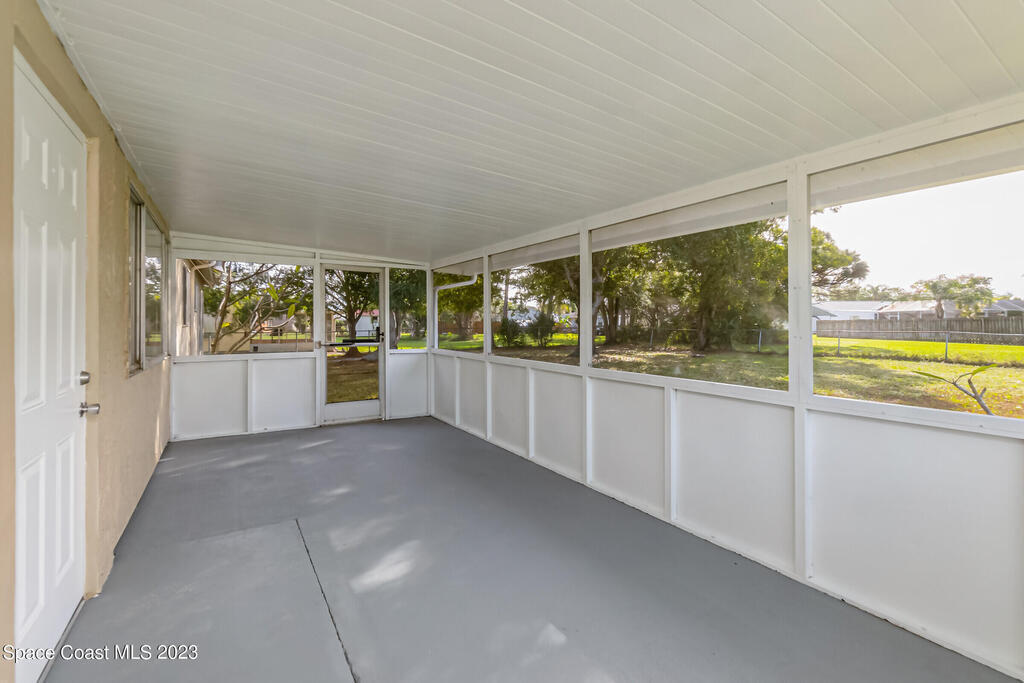 Centrally Located off Palm Bay road close to 95 & shopping. This 3 bedroom 2 bath with All New Plumbing supply lines, also features a Brand New Kitchen with new appliances, New Baths, and large screened back porch & extra onus room (good for a small office or extra storage just off the dining room. Don't let this one slip away.