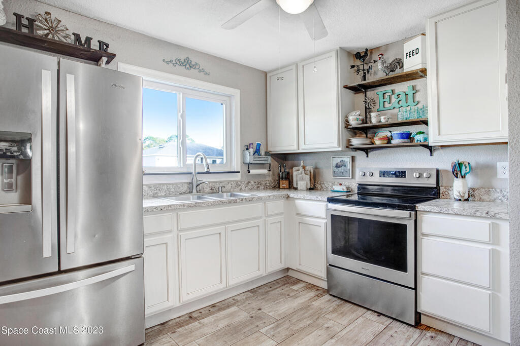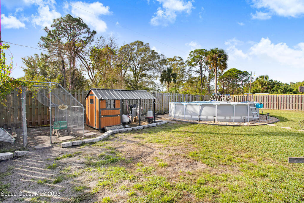 Looking For A Convenient Location Close To All That Palm Bay Has To Offer Then Be Sure To Add This Pool Home Featuring City Water, 2 Bedrooms 2 Baths 1 Car Garage With Flex Room That Can Be Used For A 3rd Bedroom Office Or Salon To Your List. The Home Is Situated On A Nicely Paved Road Surrounded By Several Newly Constructed Homes. Recent Improvements Include A Newer Roof 2021, Newer A/C System Including Ductwork 2022, Kitchen And Bathroom Remodels Completed In 2019. Select Newer Windows 2023 And The Hot Water Heater Was Replaced In 2023. The Home Also Offers Ceramic Tile Flooring Throughout, Decorative Barn Door, Kitchen Appliances, Soft Close Drawers, Double Sink, Ceiling Fans, Garage Door Opener, Fenced Yard And Much Much More So Be Sure To Check Out The Video On Photos Tab.