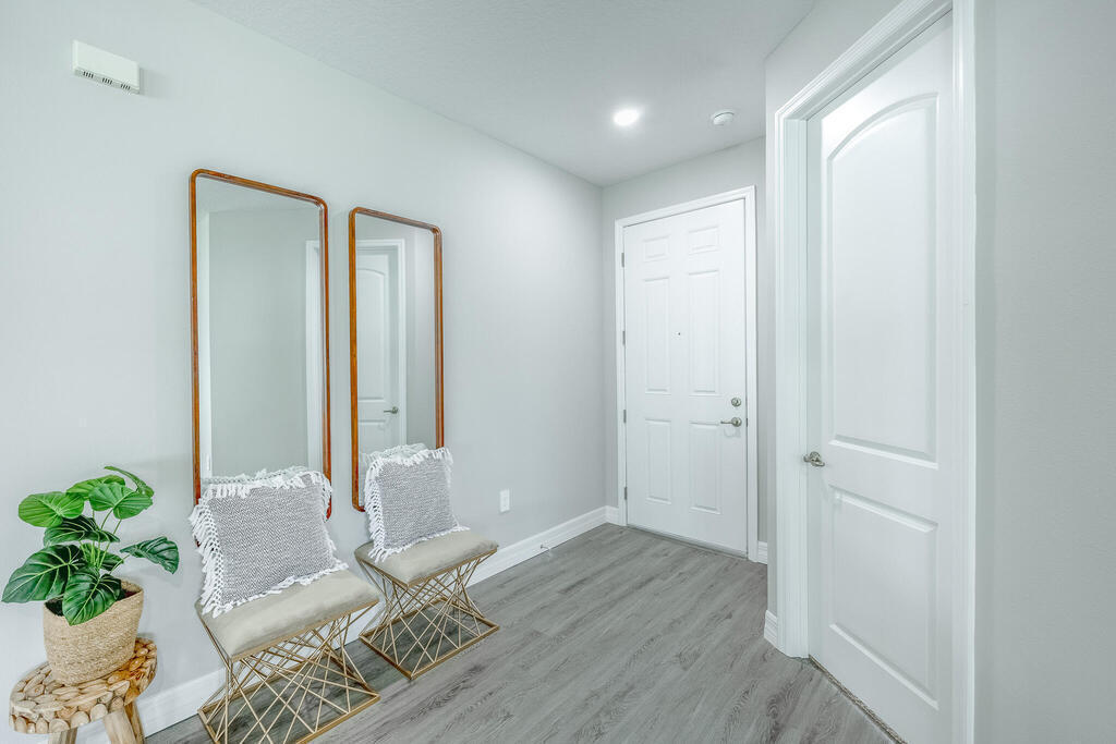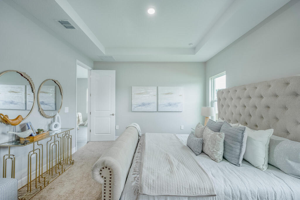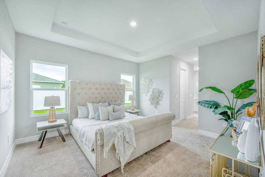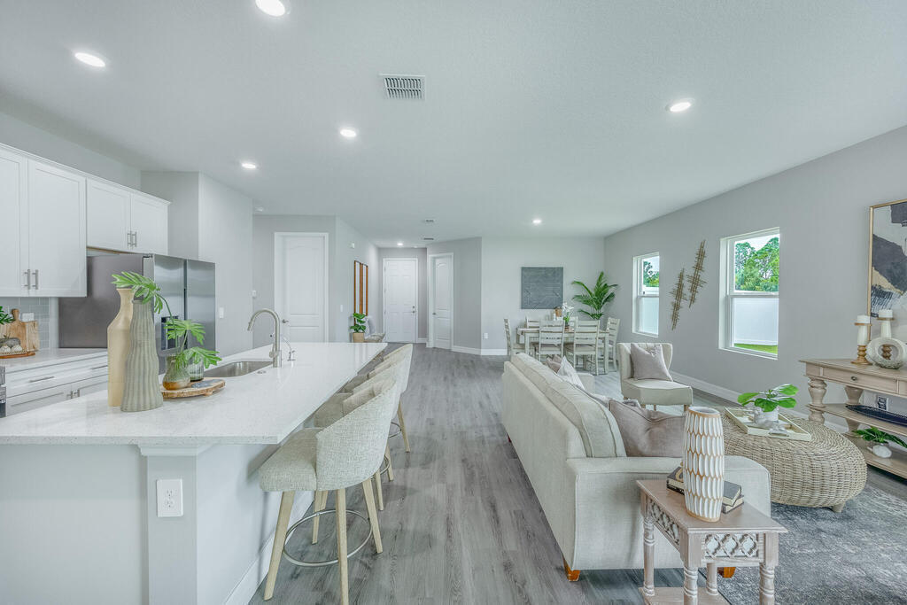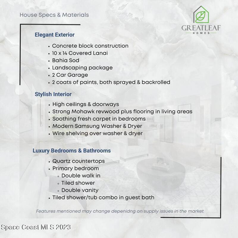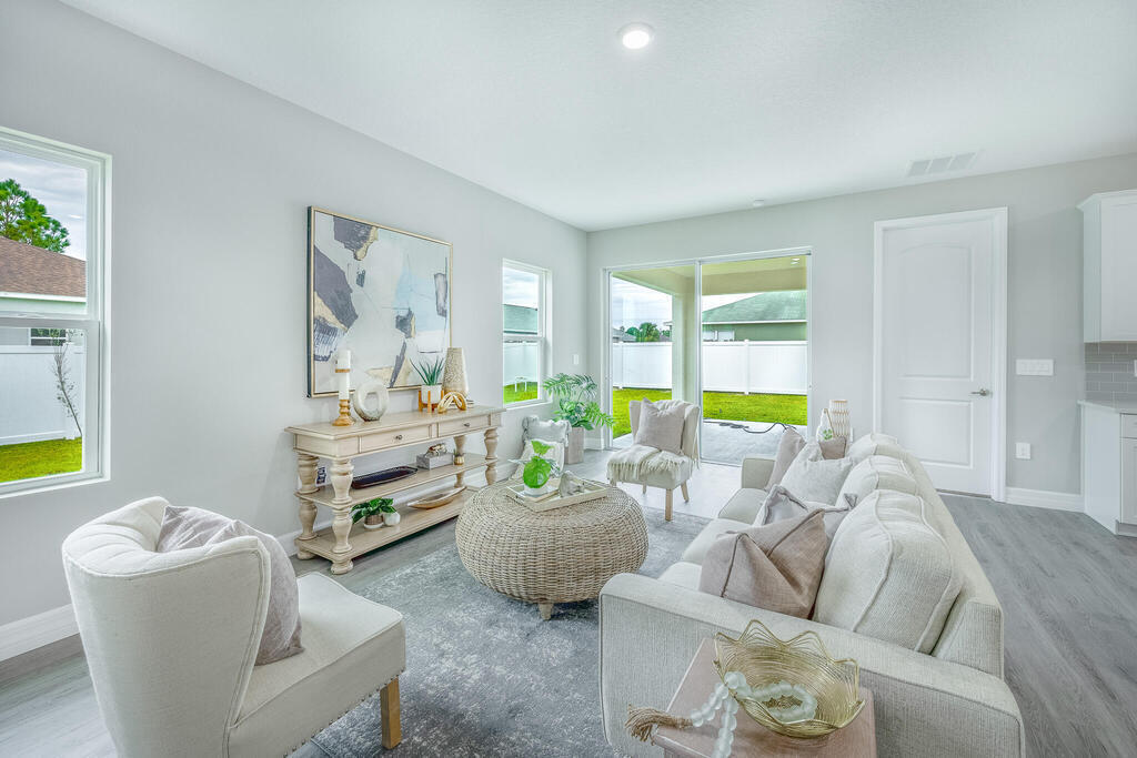 New Construction! Move in ready! This beautiful home boasts 4 bedrooms, 3 bathrooms, and a 2-car garage. This home includes a stainless-steel Samsung appliance package, quartz countertops, tiled showers, Mohawk RevWood flooring, a ring doorbell, a covered lanai and 9'4'' ceilings with 8' doors throughout the house. Step inside, and you'll be greeted by a large great room, with the owner's retreat just beyond. The owner's retreat features a tray ceiling, His/Her walk-in closets, and dual sink vanities. The fourth bedroom is tucked away at the front of the house, offering a private space with an ensuite bathroom! No HOA fees or CDD. Interior photos are from a recently completed home.