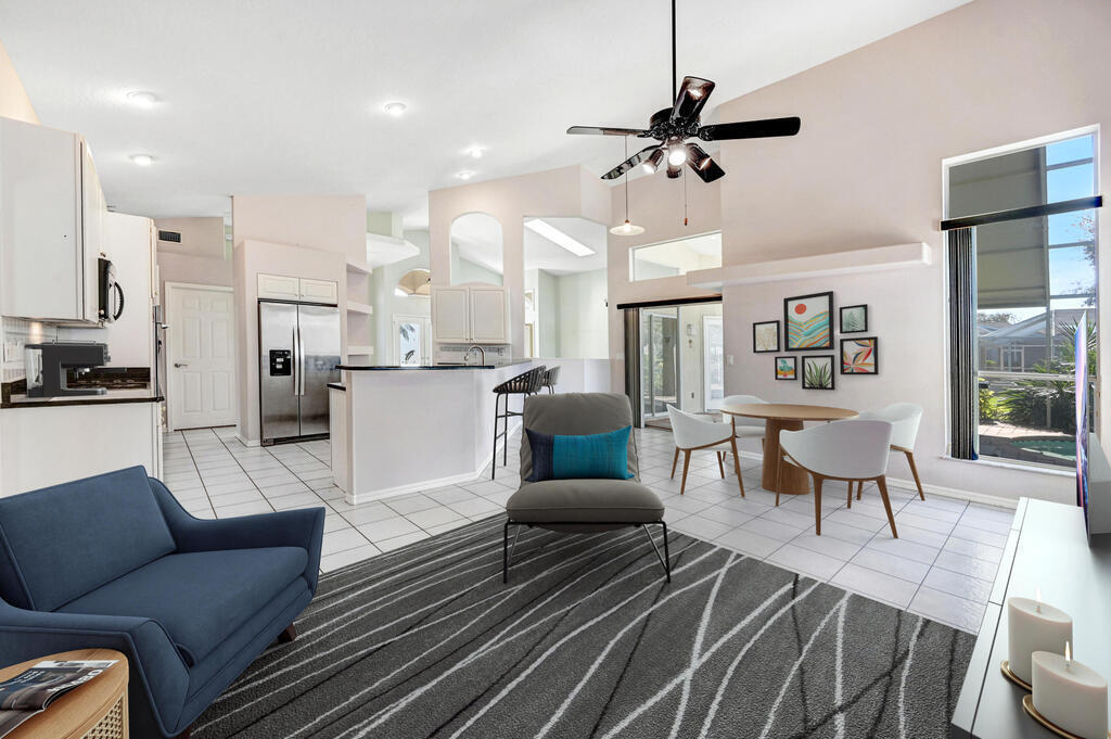 Just minutes from shopping, this 2085 sq ft home is perfect for laying by the pool and watching the wildlife around the lake. 4 bedrooms, 2 baths with plenty of room to entertain. Sliders leading out to the pool from the living room and family room. Granite countertops in kitchen. Vaulted ceilings give it an even more open and airy feel. Walk in closets and double vanities in main bathroom. Low HOA fees to live in this lovely community.