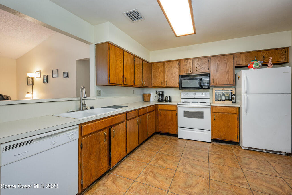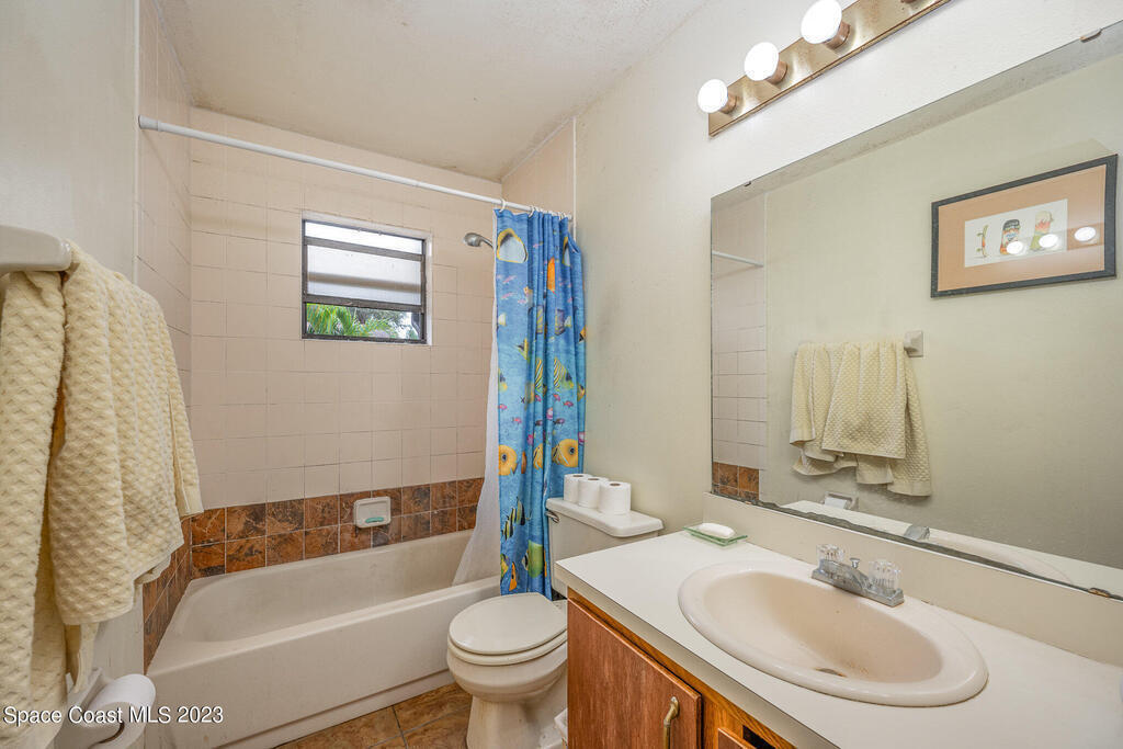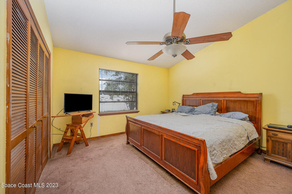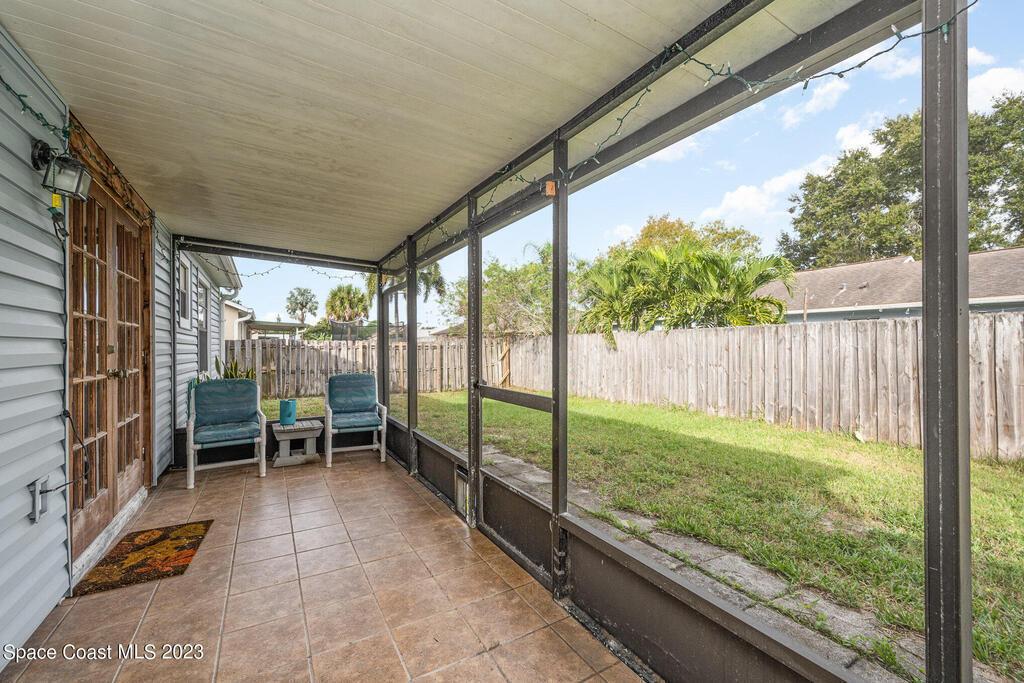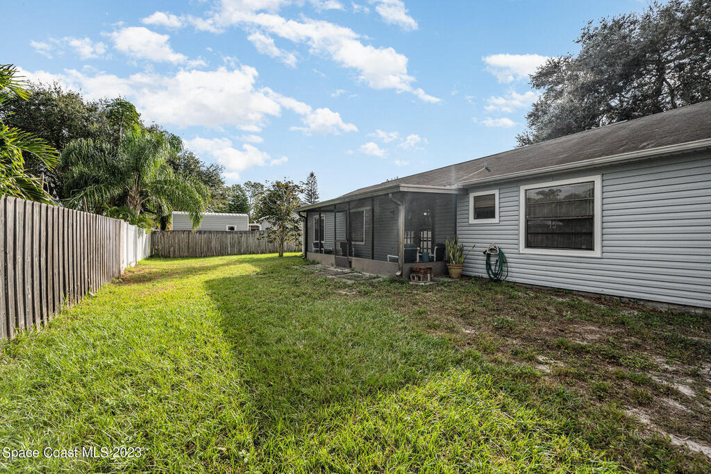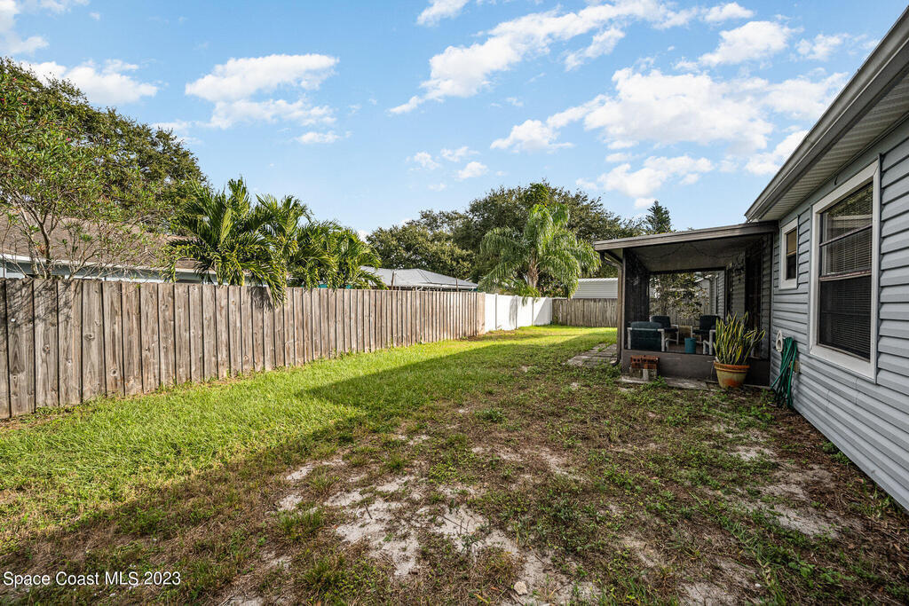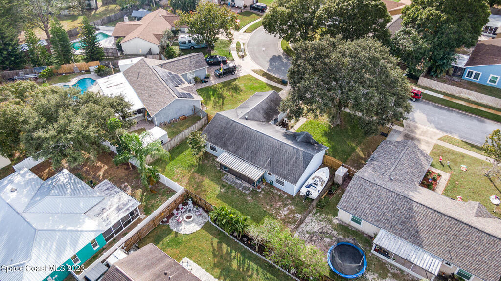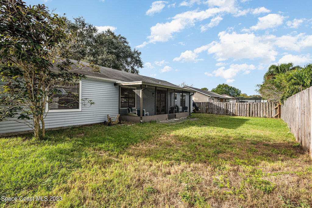ROOF NEW JAN 2024 - brand new . Cul de sack location on quiet street of Pine Cove area . Nice floor plan - one level / vaulted ceilings in main living area / open layout / perfect for starting family or retired couple . Kitchen is open to great room - separate dining room area - open to great room . Sliders from main living area to screened porch . Back yard all fenced in . Split floor plan that offers 2 bedrooms - full bath and opposite side master bedroom / walk in closet / spacious master bath with dual vanities and walk in shower. Tiled floors in main area . Great location close to shopping , Viera , schools .