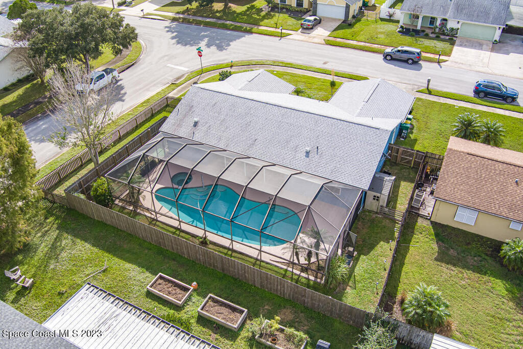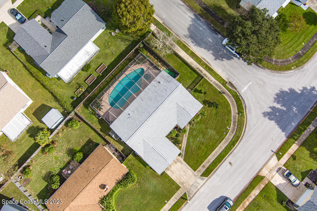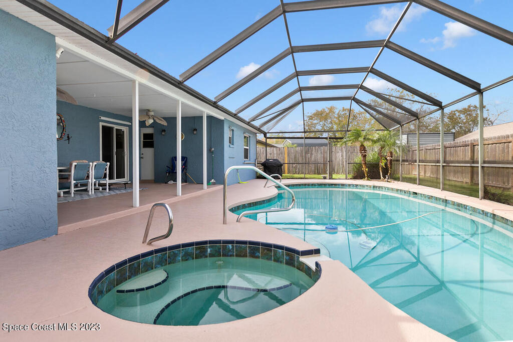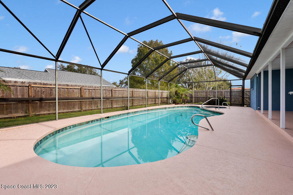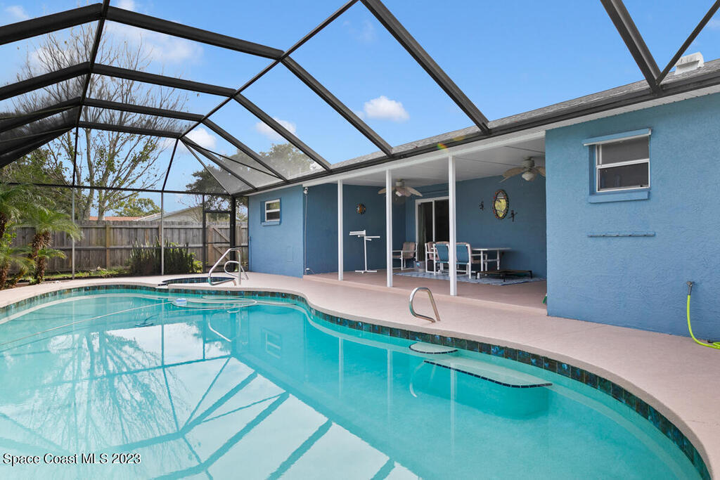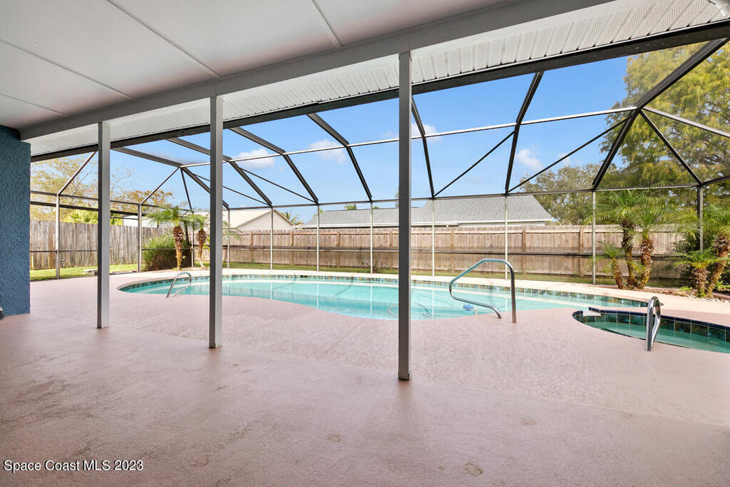 Desirable 3 BED, 2 BATH POOL HOME with OFFICE on large corner lot in Cocoa North Subdivision. Beautiful, serene neighborhood with NO HOA! Spacious split floor plan has an open kitchen/living room area with two slider doors that lead to large covered freshly painted lanai, perfect for entertaining. Fully fenced yard with gorgeous screened in pool with attached spa. Large master bathroom with new double vanities, tiled walk-in shower and jetted bath tub. New appliances, A/C unit and water heater. New roof and gutters installed 2019. Large 2 car garage with new hurricane rated garage door. Ring camera system included! CONVENIENT LOCATION! Only 35 minutes to Orlando Airport and 15 min to port and beaches. Close to US-1, the Beachline and I-95!