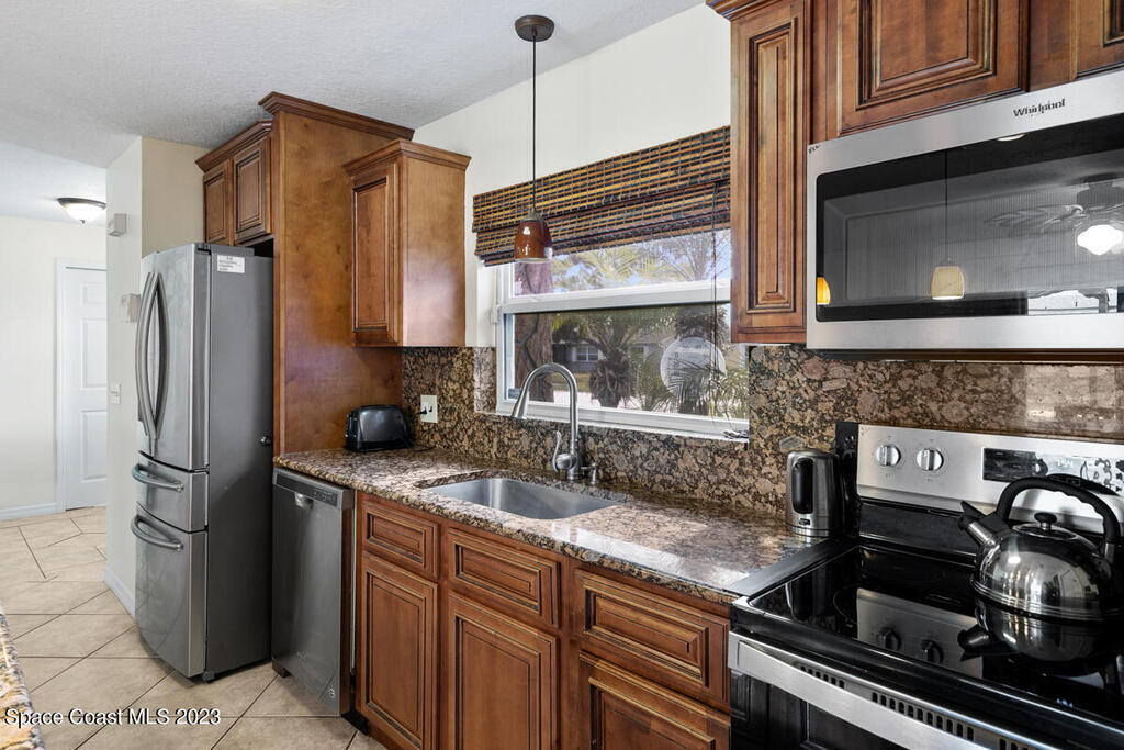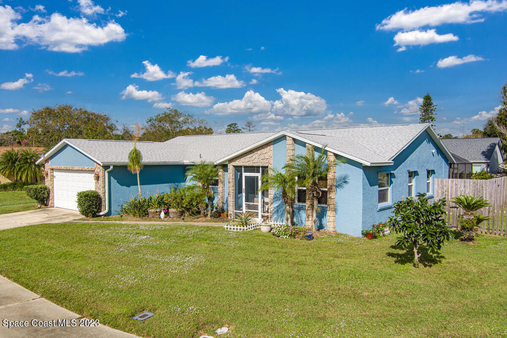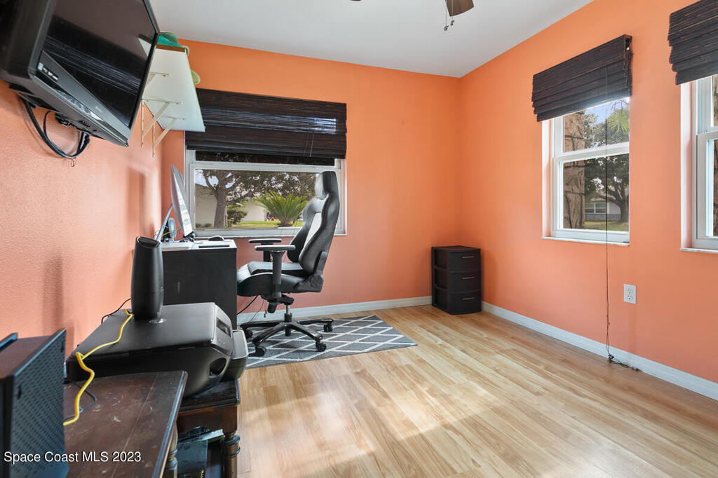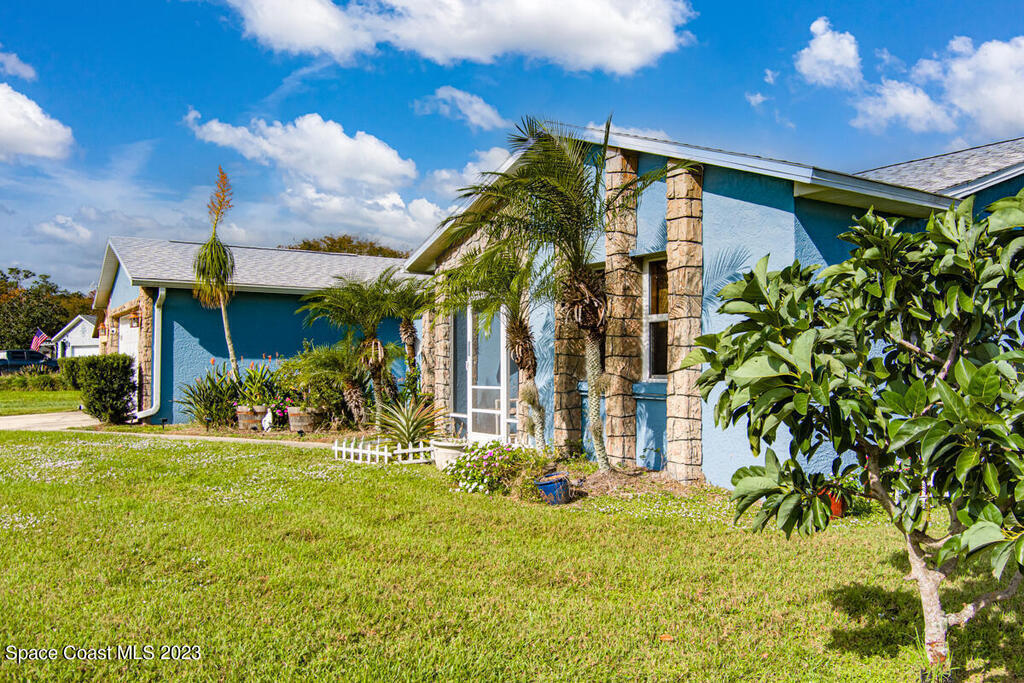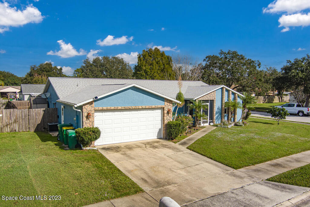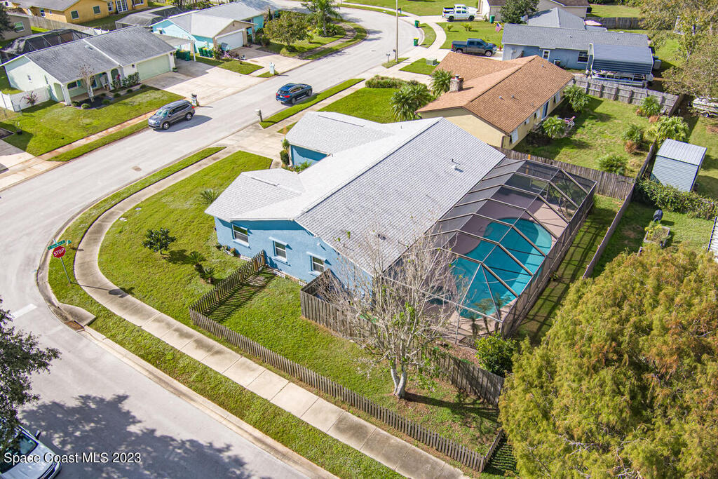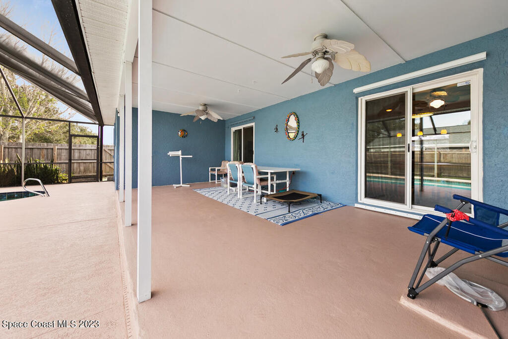 Desirable 3 BED, 2 BATH POOL HOME with OFFICE on large corner lot in Cocoa North Subdivision. Beautiful, serene neighborhood with NO HOA! Spacious split floor plan has an open kitchen/living room area with two slider doors that lead to large covered freshly painted lanai, perfect for entertaining. Fully fenced yard with gorgeous screened in pool with attached spa. Large master bathroom with new double vanities, tiled walk-in shower and jetted bath tub. New appliances, A/C unit and water heater. New roof and gutters installed 2019. Large 2 car garage with new hurricane rated garage door. Ring camera system included! CONVENIENT LOCATION! Only 35 minutes to Orlando Airport and 15 min to port and beaches. Close to US-1, the Beachline and I-95!