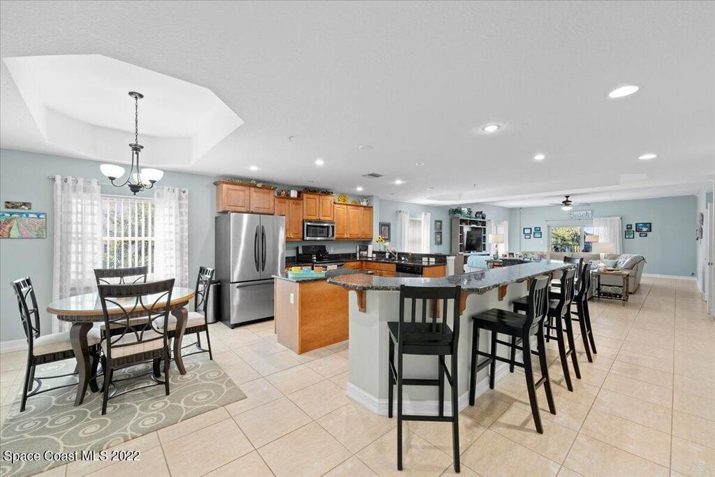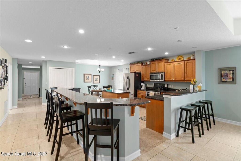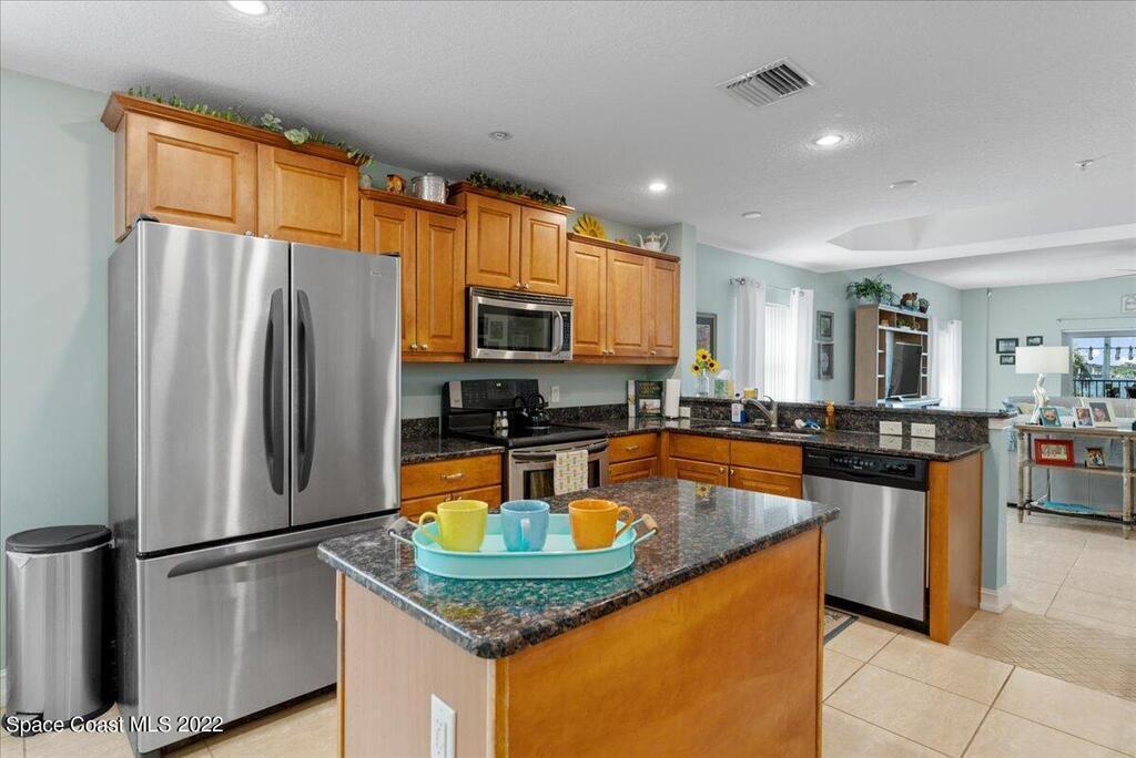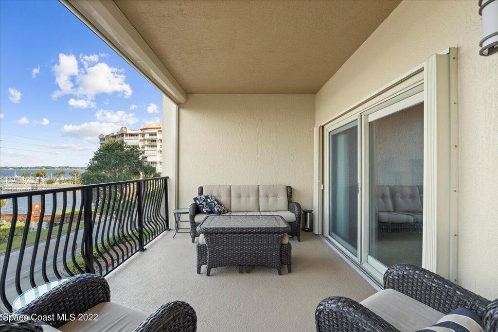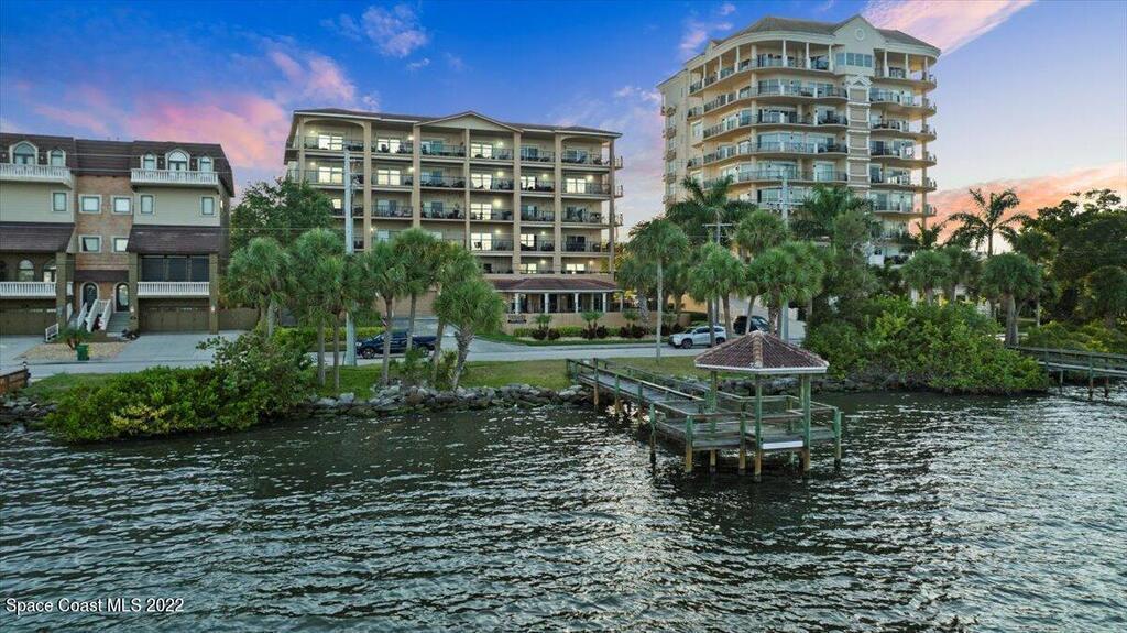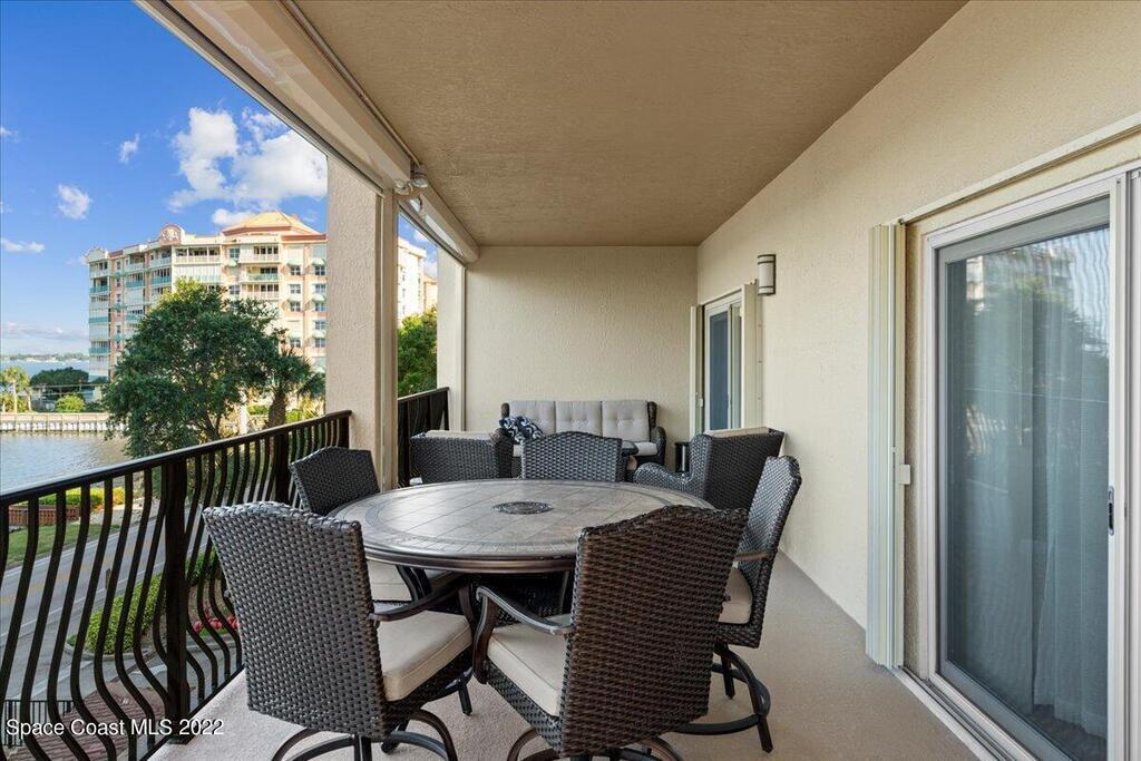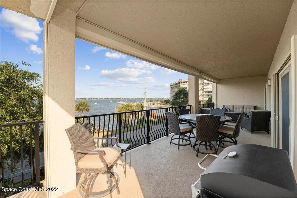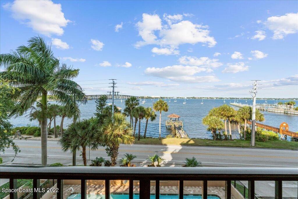 Riverfront four bedroom end unit condo with a spacious open floor plan, 2600 sqft. and fully furnished located in desirable, Cocoa Village! Condo features include approx. 10' ceilings and amazingly large wrap around balcony. The modern large kitchen has granite countertops with stainless steel appliances, breakfast bar, kitchen Island & eat-in kitchen. Plenty of storage in the garage area and private dock for Riverside Landing. All furniture is included in the price!