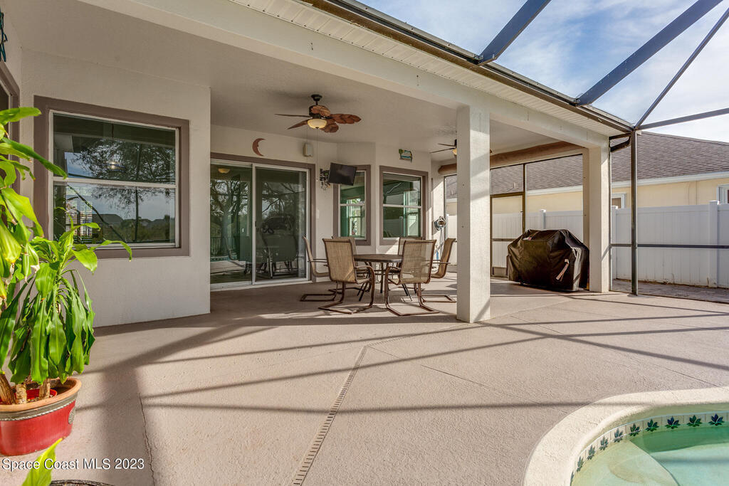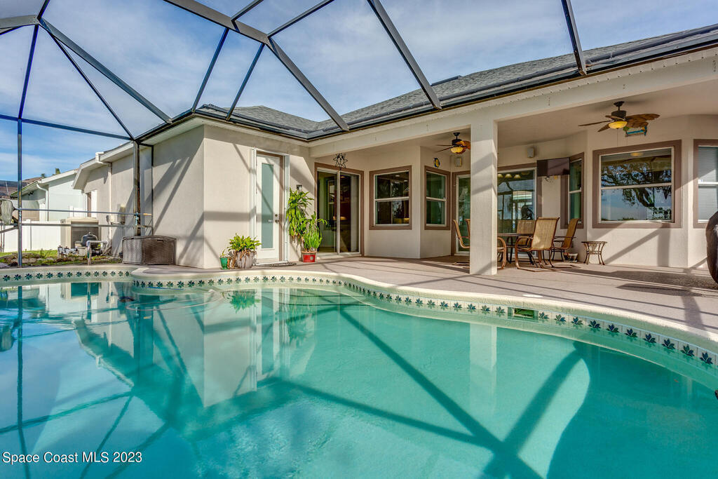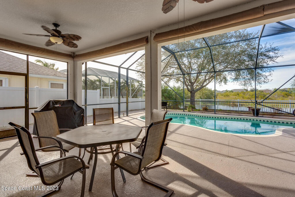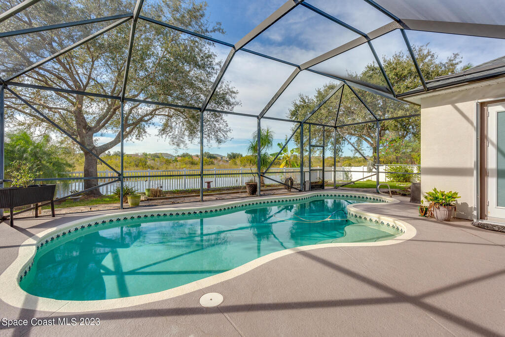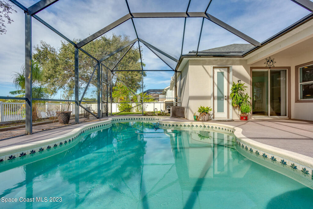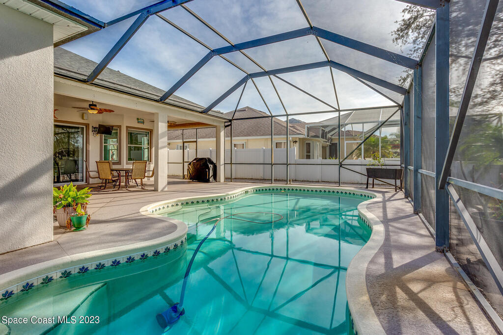 Looking for a spacious and private home in the heart of it all? Then this 4 bed, 3 bath home in the gated community of Chastain Manor (Grand Haven) is for you! Tons of natural light. The primary suite overlooks the pool has two walk-in closets, two vanities and separate tub and shower. The kitchen is great for entertaining because it overlooks the family room and you can gather around the center island, at the breakfast bar or seated in the nook. Two bedrooms share a bathroom. The remaining bedroom and bath are separated and perfect for guests. Computer station. Top it all off with a large trussed porch with 10' ceilings, screened enclosure, sparkling solar heated pool, lake view and preserve wooded view and a fenced yard. Newer Roof. 5 mins to the beach. Community Playground.