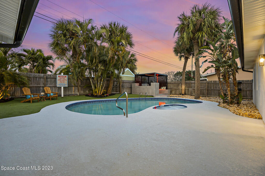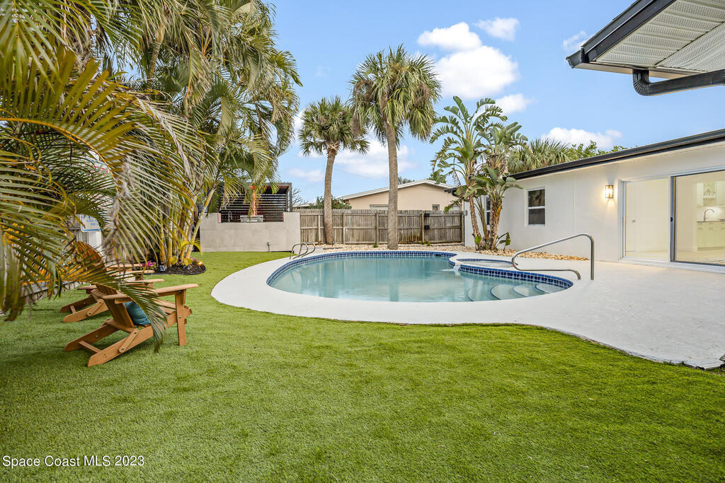 For qualified buyer, special intro rate buy down at 5.375% saving $408 a month with preferred lender. Fun & cozy beachside corner lot gem! Featuring an outdoor living space that's an entertainer's dream surrounded with themed landscaping, a large pool, a gated side entrance for boat/RV/Toy parking & a modern summer kitchen gazebo with all of the bells & whistles. Impact windows throughout. Excellent school district walking distance (Surfside Elementary, Delaura Middle, Satellite High). Beaches are just a 15 minute walk away. Must see in person!