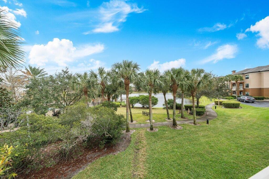 NOTE: There is a 7 month Lease with Option to Purchase as of February 1 which may be exercised sooner. This is a large, mint condition, 3 bedroom, 2 bath, 2nd floor end unit with view of both the pond, BBQ/picnic area and the clubhouse in the 1st building to the left upon entering the complex via a security gate with 2 assigned parking spaces directly in front. The unit is fully tiled (18 inch), freshly painted, with 2 walk-in closets, new French doors and new AC compressor. Three Fountains is conveniently located within walking distance to The Avenue Viera shopping mall and near all that Viera and Brevard offer. Quiet and restful is the order of the day but you are still within minutes of stimulating downtown Melbourne, ocean beaches, Port Canaveral, Kennedy Space Center and two major airports. For full time living, as a vacation home or as an investment property you will profit here.