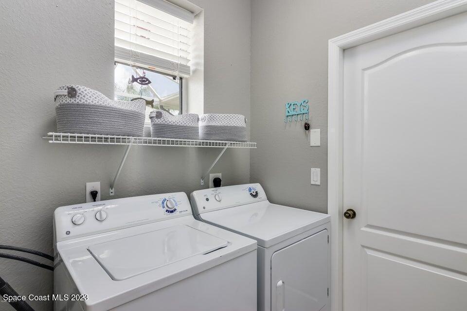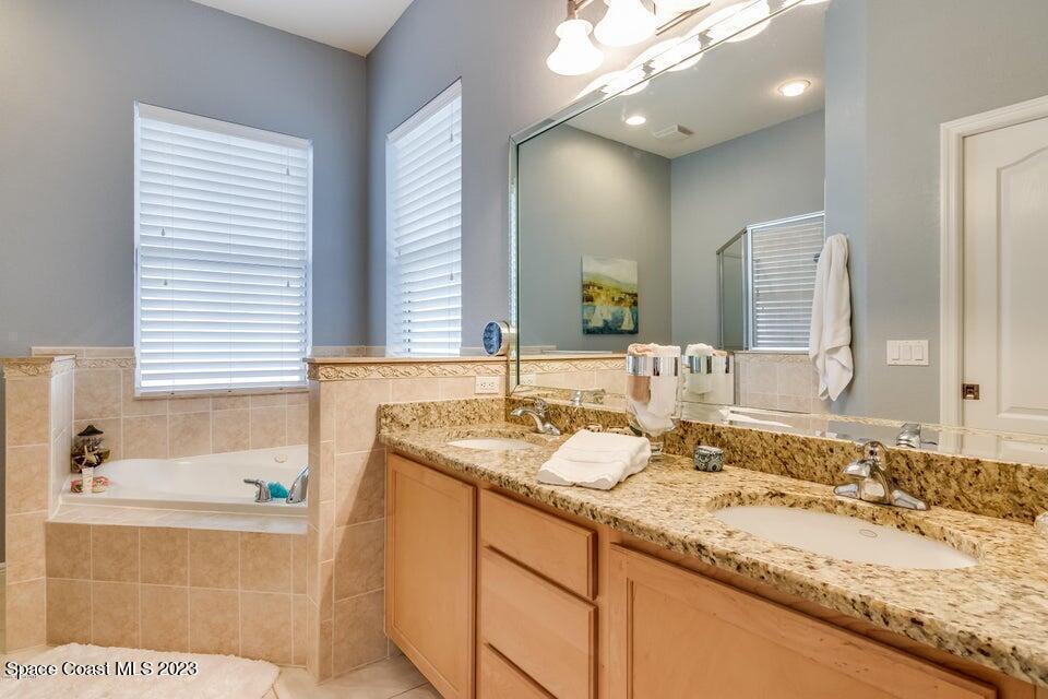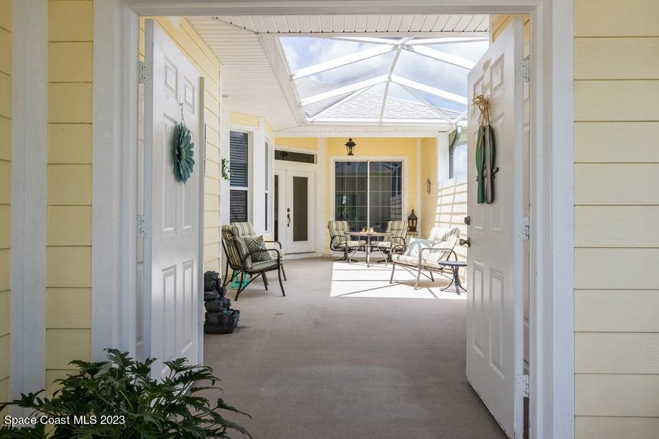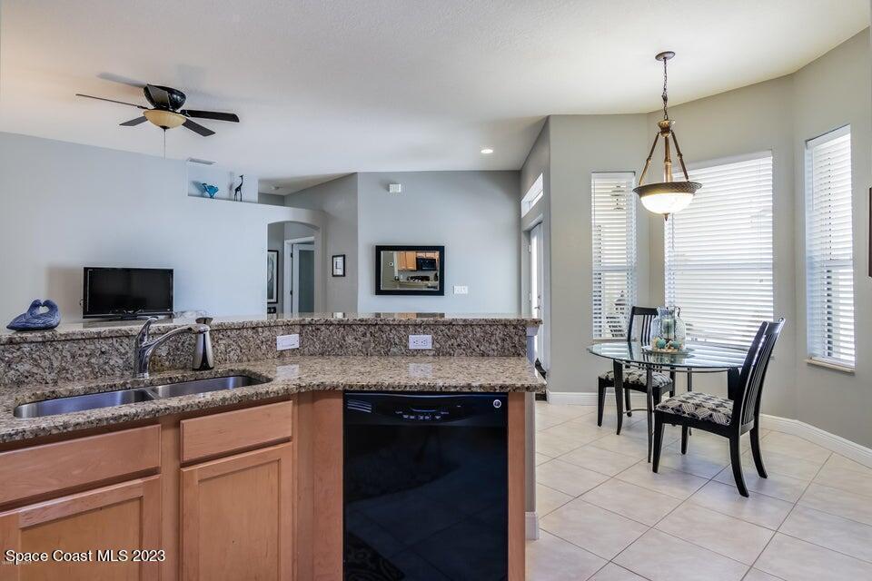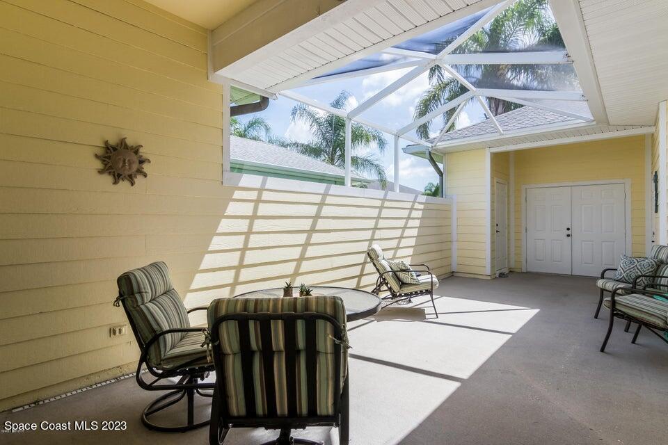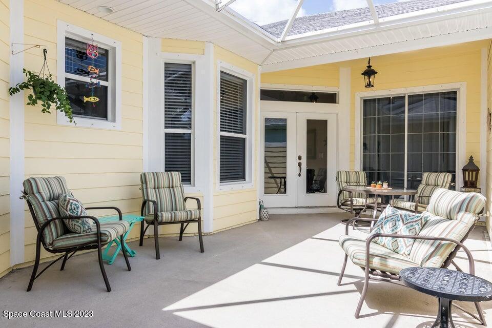 Bimini Bay a Key West style gated community with community pool. This well maintained home has a large private screened courtyard. Kitchen with granite counters, pantry, recessed lights, breakfast bar over looking living & dining areas. Large Master suite with slider leading to courtyard, double sinks, granite counter, walk in shower and garden tub. Inside laundry room with washer & dryer. New roof (2023). New brick paver driveway. Amenities include full lawn care, irrigation, exterior painting, roof replacement, solar heated pool & clubhouse . Conveniently located to shopping, dining & I-95