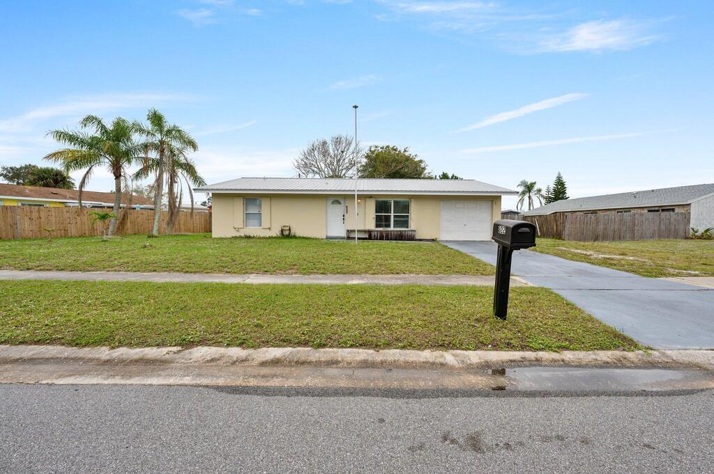 Welcome to your new home in Palm Bay, FL! This 3-bed, 2-bath single-family gem offers a perfect blend of comfort and style. Slate flooring welcomes you into a modern kitchen with stainless steel appliances and an inviting eat-in area. Step into the backyard oasis with an in-ground pool, perfect for relaxation and entertaining. This residence features a one-car garage and a durable metal roof installed in 2016. The large yard provides space for outdoor activities. Enjoy the convenience of nearby shopping, restaurants, schools, and parks. Nature lovers will appreciate the proximity to Turkey Creek Sanctuary Nature Preserve. Strategically located for L3Harris commuters, the beach is just 20 minutes away, and the river is a short drive. Experience the best of Palm Bay living today!