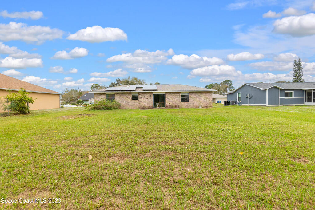 Experience the perfect combination of comfort and luxury in this updated home located in the heart of Palm Bay! With a brand new A/C, new water heater, beautiful granite countertops, a huge backyard, and solar panels, this home offers everything you need for a relaxing Florida lifestyle. Don't miss out on the opportunity to own your own piece of paradise!
