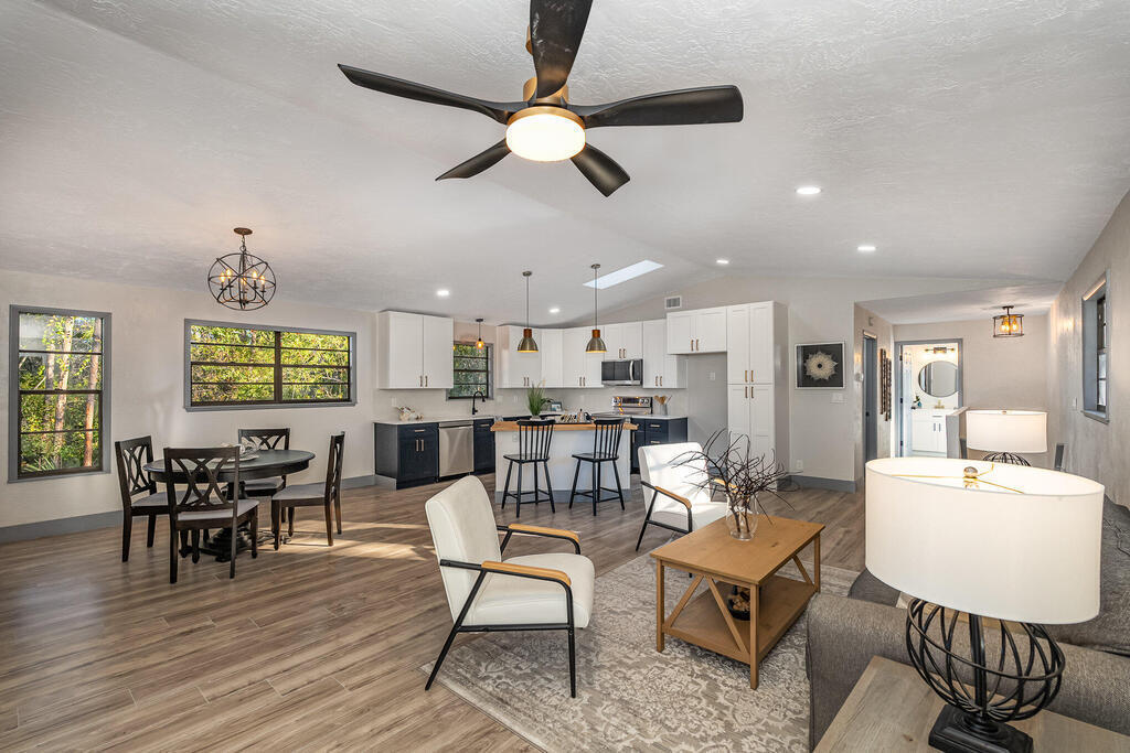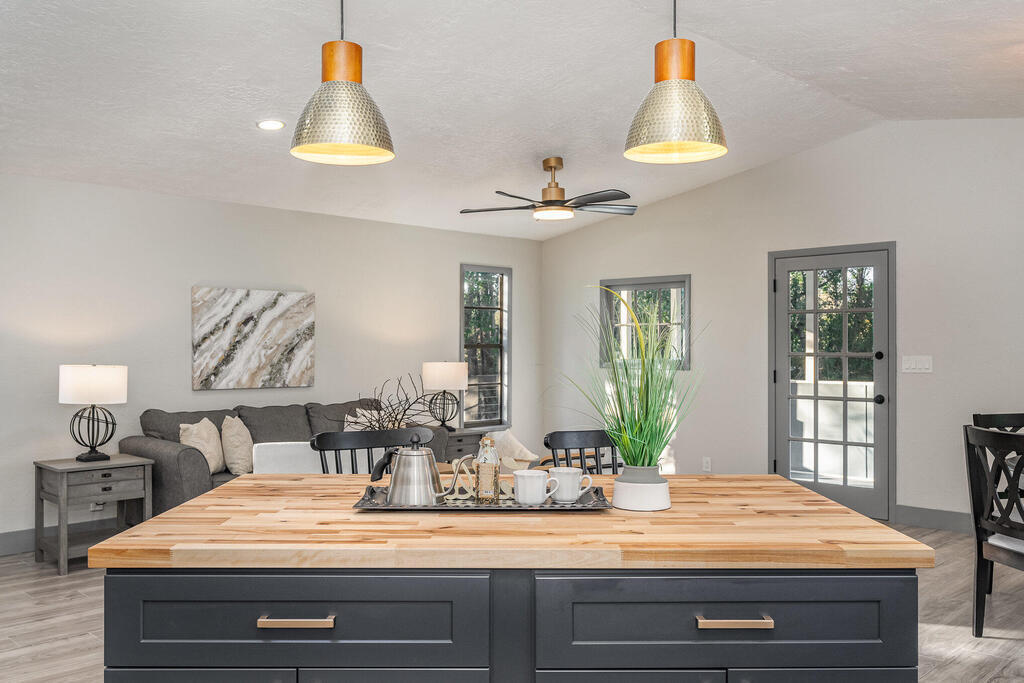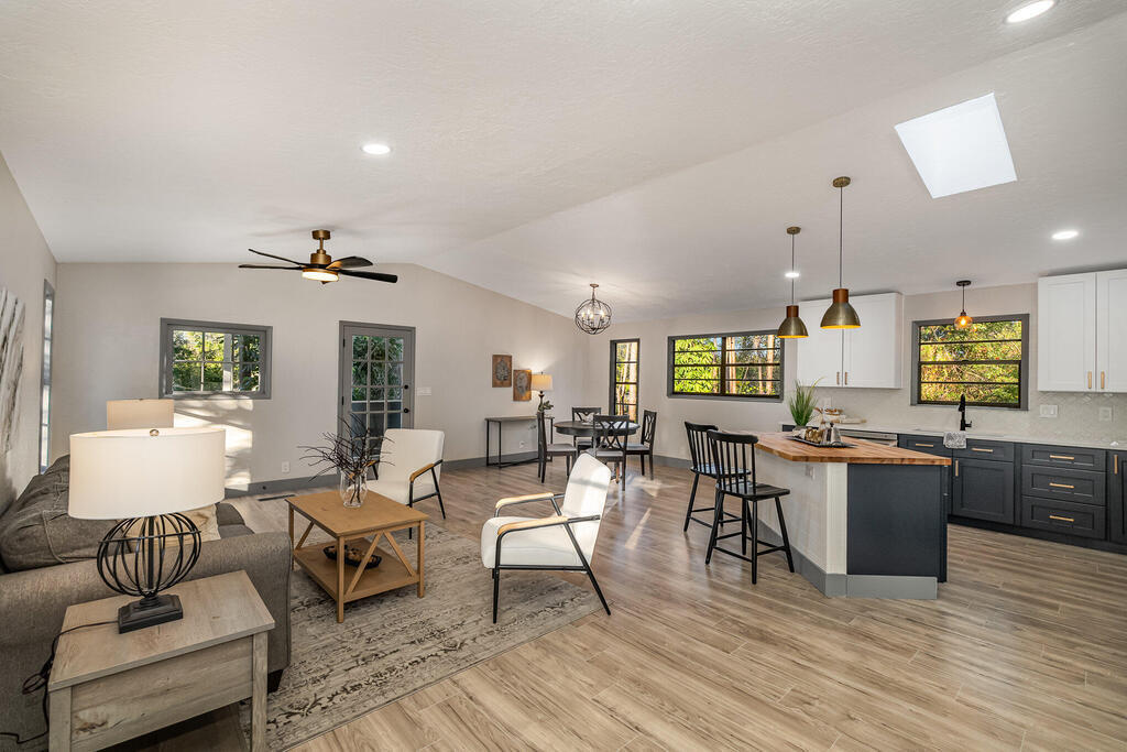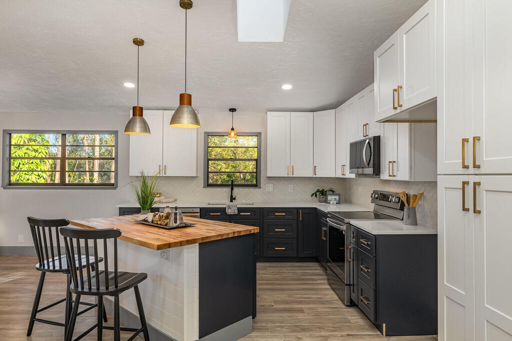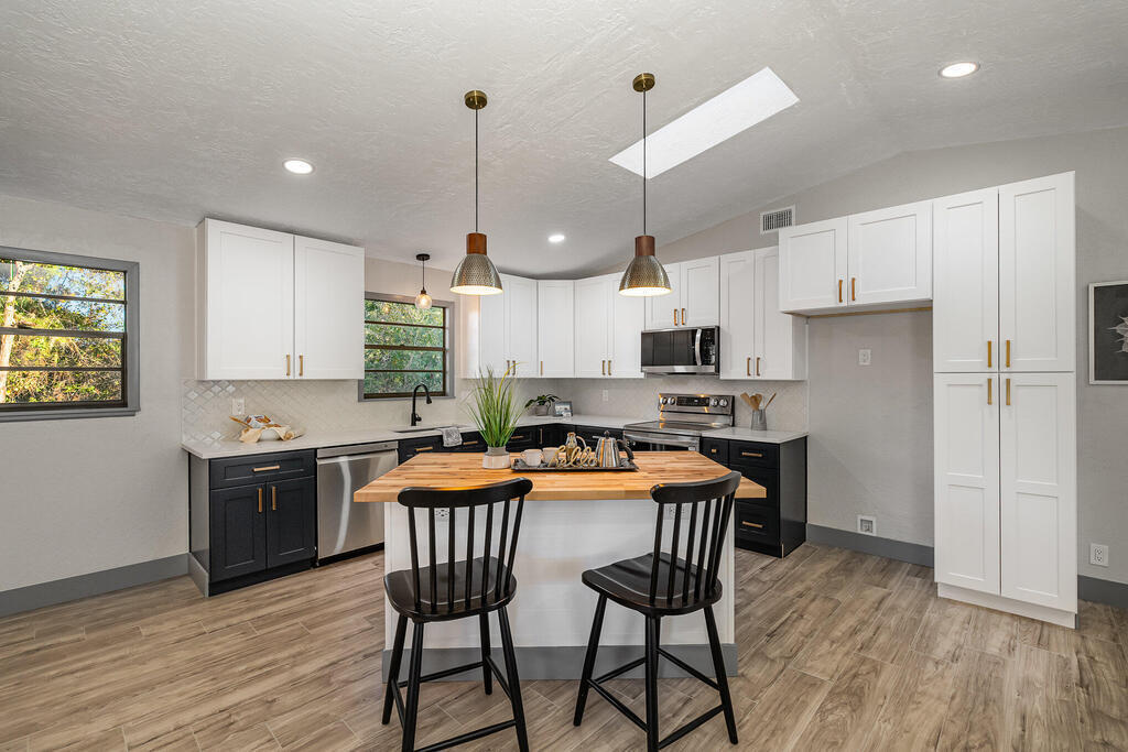 WOW! Wait until you see this beautifully remodeled 3 bed, 2.5 bath 1,920 sqft home with downstairs flex space! This home sits on .51 acre with tons of privacy! This uniquely designed home feels like a modern day TREEHOUSE, with wooded views from every window. This home features a beautiful gourmet kitchen, with a gorgeous custom butcher block island, 2 tone cabinets with soft close, stainless steel appliances, matching Quartzite countertops throughout. New laminate flooring, large baseboards and custom lighting. Home also features a stunning master suite with massive walk-in shower and LED Illuminated mirror. Guest bathroom features tub/shower combo and linen closet and a beautiful half bath for your visitors. New Roof, cement board siding, interior/exterior paint, electrical panel...