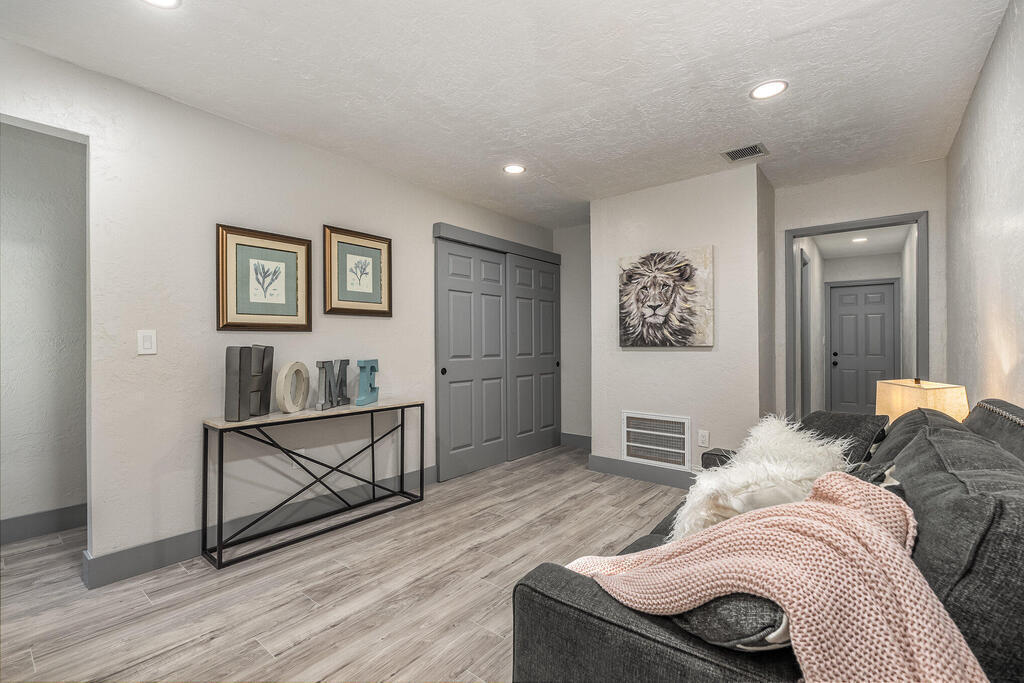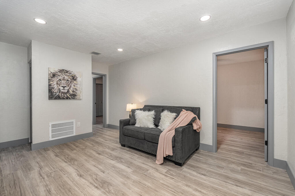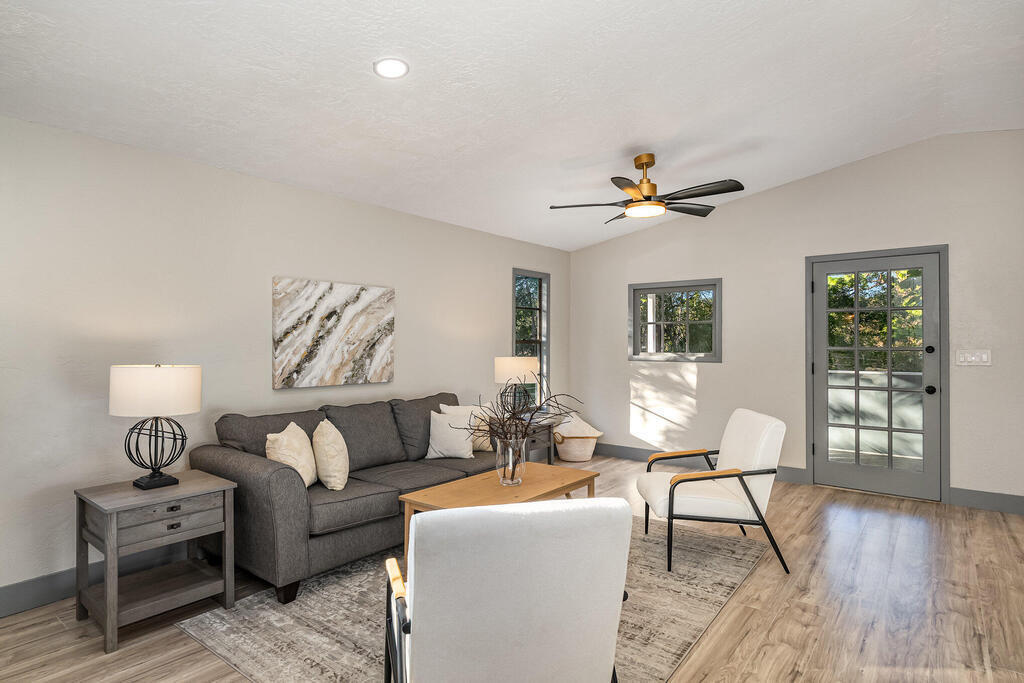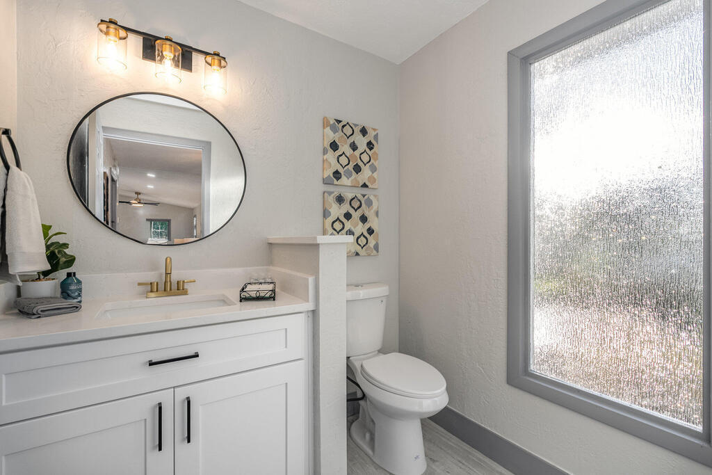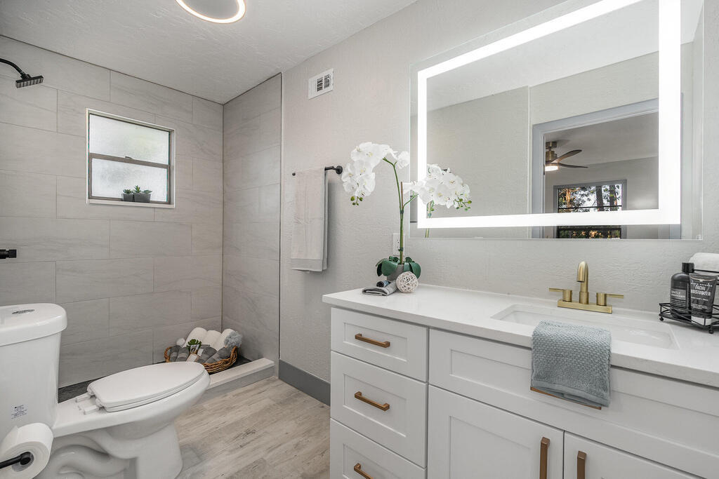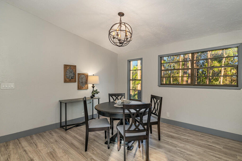 WOW! Wait until you see this beautifully remodeled 3 bed, 2.5 bath 1,920 sqft home with downstairs flex space! This home sits on .51 acre with tons of privacy! This uniquely designed home feels like a modern day TREEHOUSE, with wooded views from every window. This home features a beautiful gourmet kitchen, with a gorgeous custom butcher block island, 2 tone cabinets with soft close, stainless steel appliances, matching Quartzite countertops throughout. New laminate flooring, large baseboards and custom lighting. Home also features a stunning master suite with massive walk-in shower and LED Illuminated mirror. Guest bathroom features tub/shower combo and linen closet and a beautiful half bath for your visitors. New Roof, cement board siding, interior/exterior paint, electrical panel...