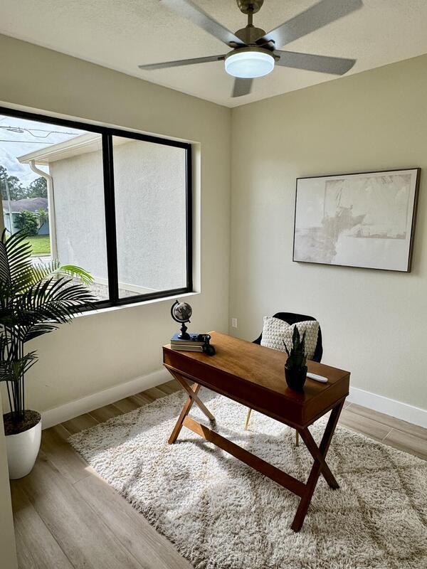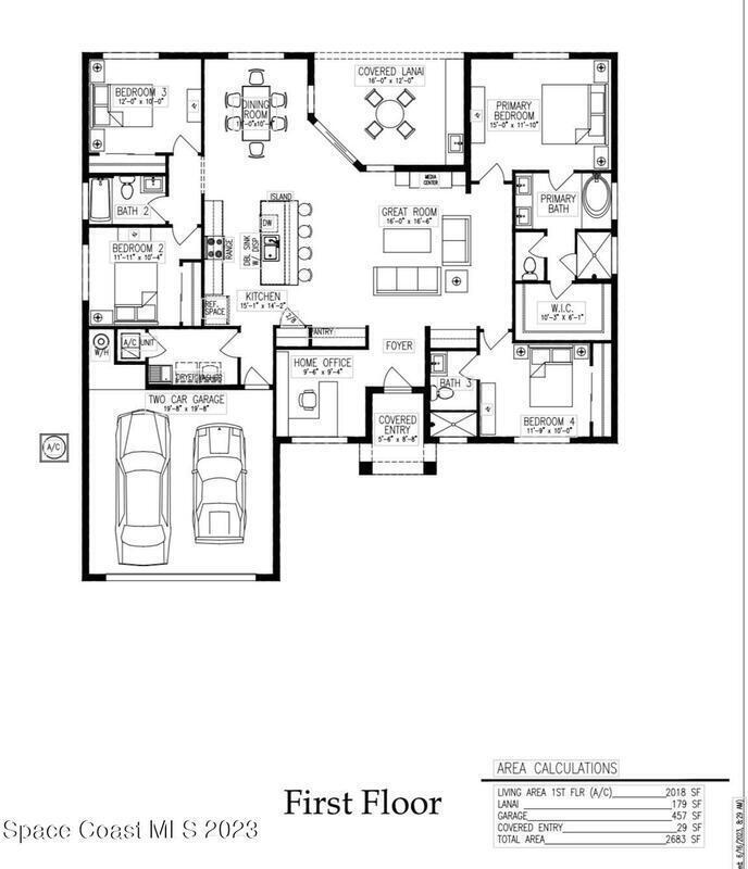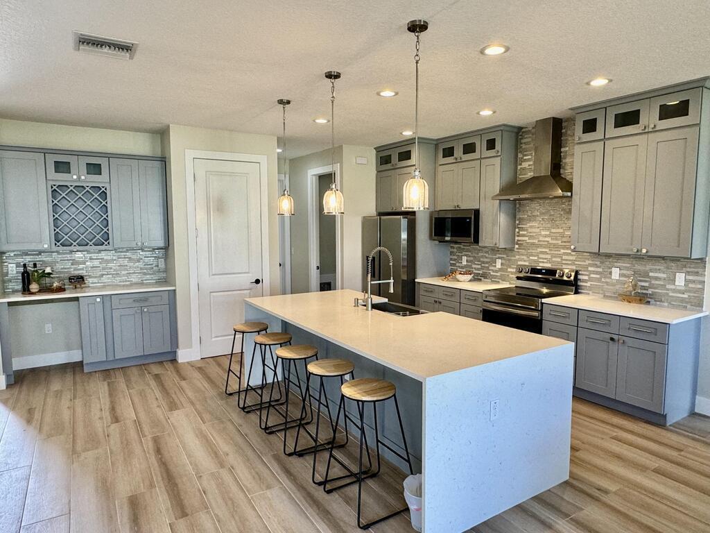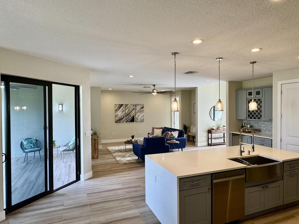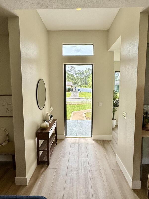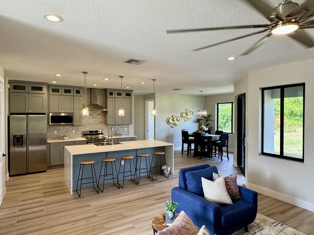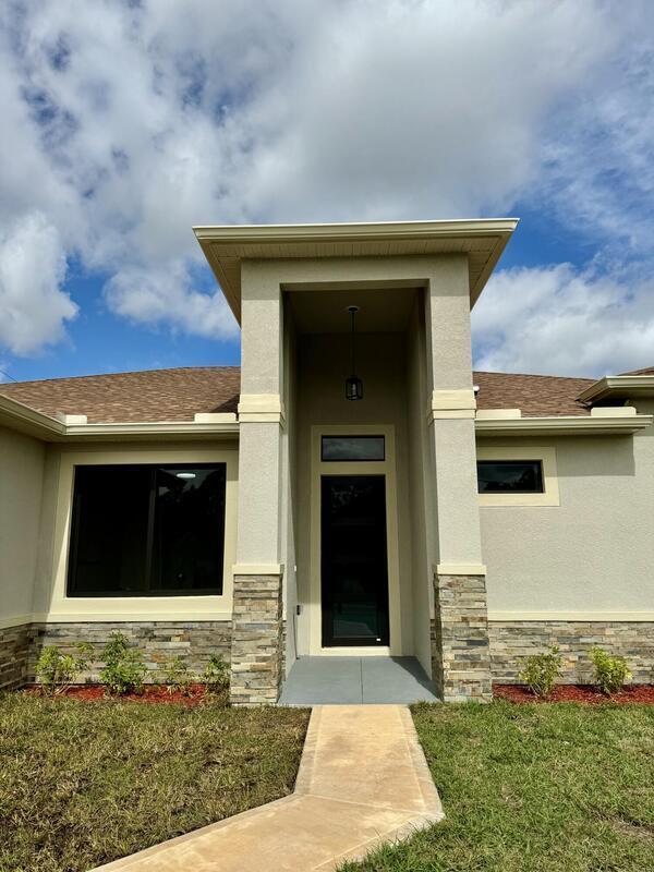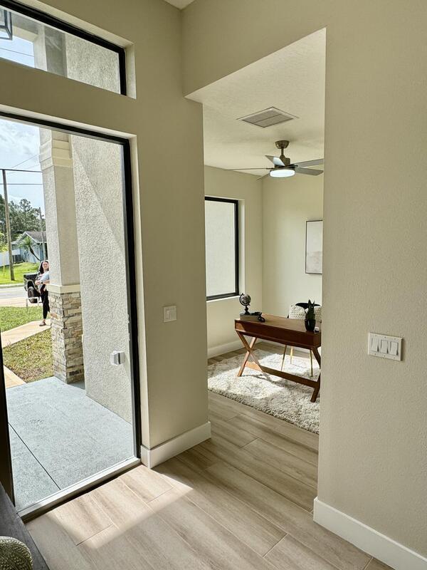 COMPLETED! Ask about our FINANCING incentives! Welcome to modern luxury living in Palm Bay! Close to shopping, dining & much more in the ''Bayside'' area. Indulge in the sleek kitchen w/ huge 9'x4' granite island w/ dual waterfall edges, Samsung appliances & custom cabinets w/ glass accents & soft-close features. The open-concept plan allows for a seamless flow into the dining & living areas, perfect for entertaining. This NEW build features 4 Bed, 3 FULL Bath, plus office & 2,108 sq ft under air. The 9.4' ceilings provide a spacious feel, complemented by sleek porcelain tile flooring which flows from inside, to the covered rear patio with outdoor kitchen utilities ready. NO carpet or vinyl! The primary suite features double sinks, a spacious tub, shower & walk-in closet. No detail has been overlooked, tile showers, granite bathroom counters, & ceiling fans enhance each room. 2-car garage, 2-yr builder warranty, 10-yr structural warranty, allows you to embrace the future w/ peac