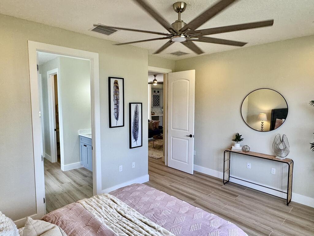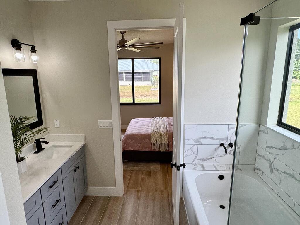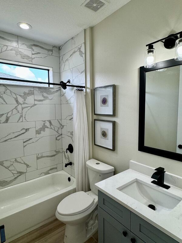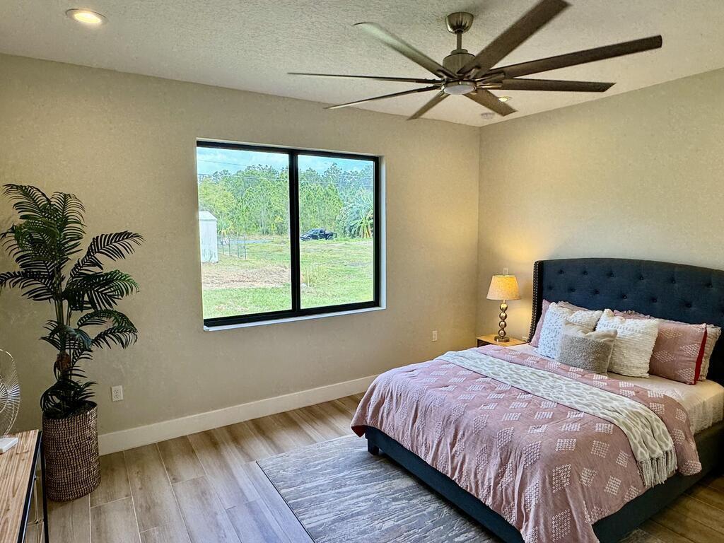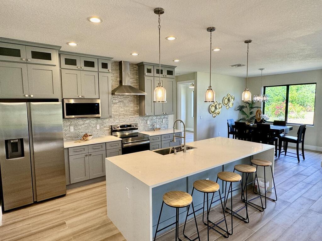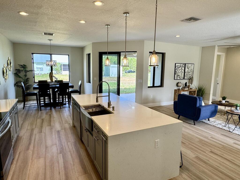 COMPLETED! Ask about our FINANCING incentives! Welcome to modern luxury living in Palm Bay! Close to shopping, dining & much more in the ''Bayside'' area. Indulge in the sleek kitchen w/ huge 9'x4' granite island w/ dual waterfall edges, Samsung appliances & custom cabinets w/ glass accents & soft-close features. The open-concept plan allows for a seamless flow into the dining & living areas, perfect for entertaining. This NEW build features 4 Bed, 3 FULL Bath, plus office & 2,108 sq ft under air. The 9.4' ceilings provide a spacious feel, complemented by sleek porcelain tile flooring which flows from inside, to the covered rear patio with outdoor kitchen utilities ready. NO carpet or vinyl! The primary suite features double sinks, a spacious tub, shower & walk-in closet. No detail has been overlooked, tile showers, granite bathroom counters, & ceiling fans enhance each room. 2-car garage, 2-yr builder warranty, 10-yr structural warranty, allows you to embrace the future w/ peac