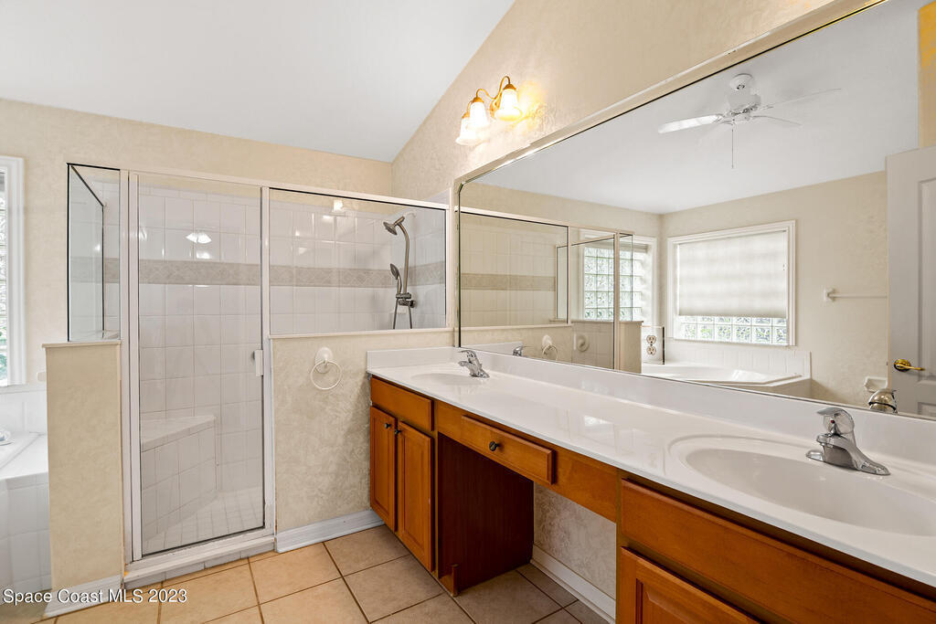 Ceiling Fan(s) , Eat-in Kitchen , Kitchen Island , Pantry , Primary Bathroom - Tub with Shower , Primary Bathroom -Tub with Separate Shower , Primary Downstairs , Split Bedrooms , Vaulted Ceiling(s) , Walk-In Closet(s)