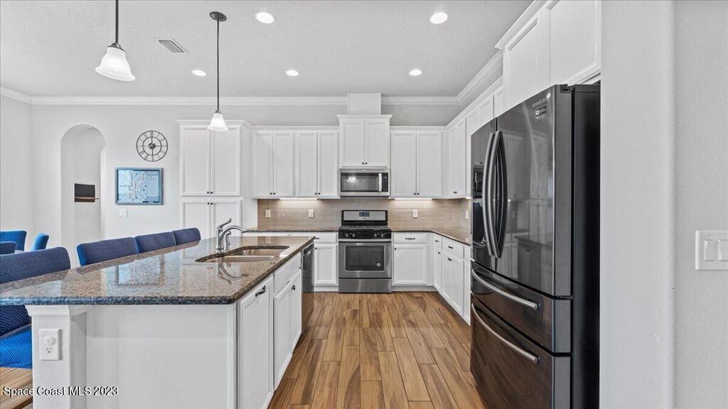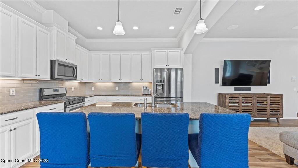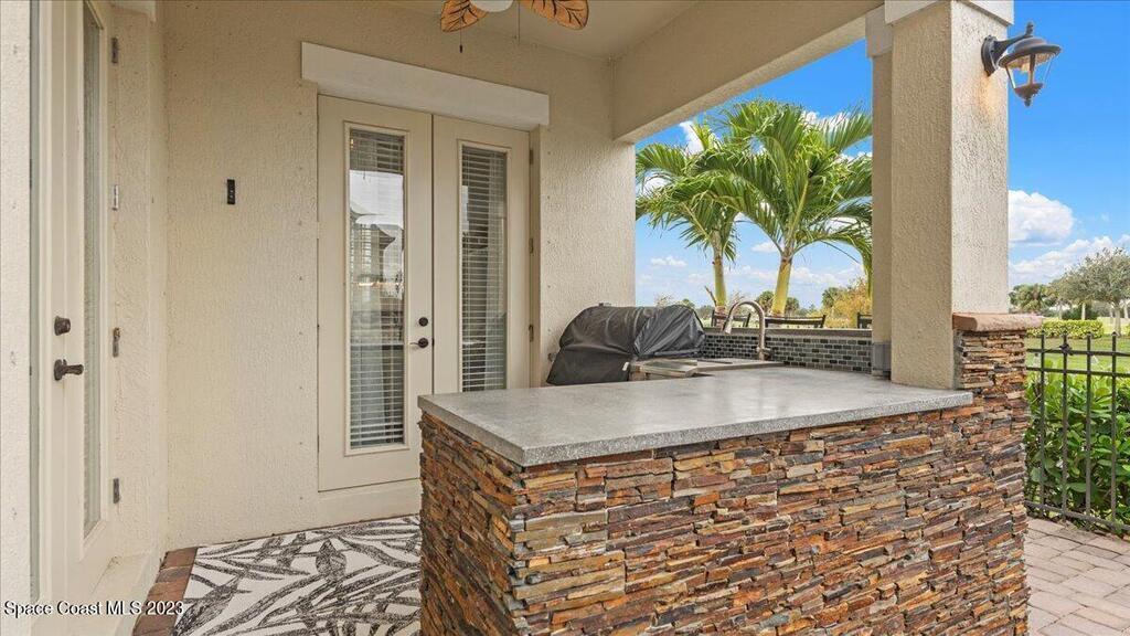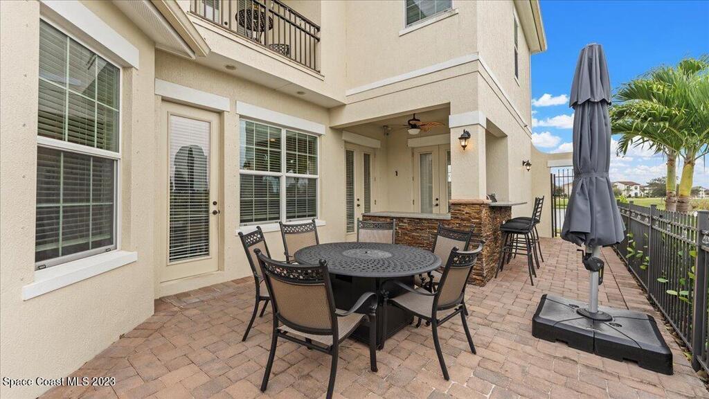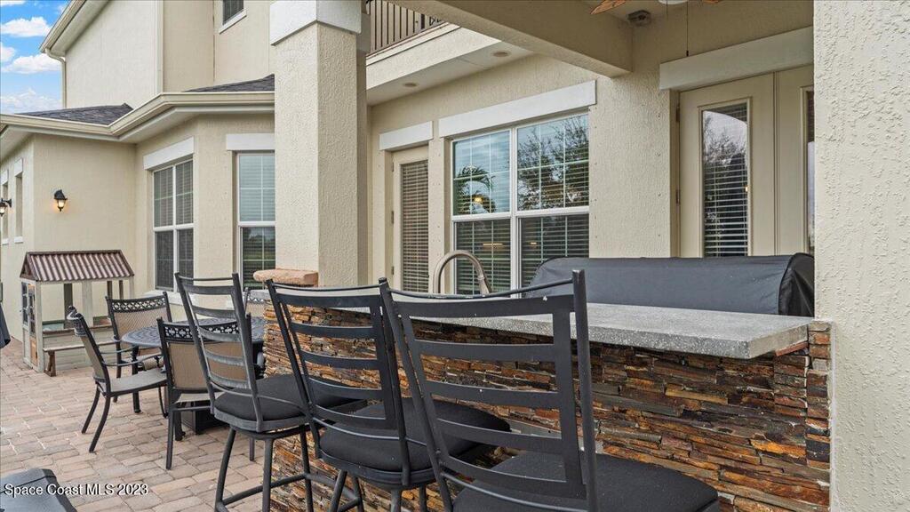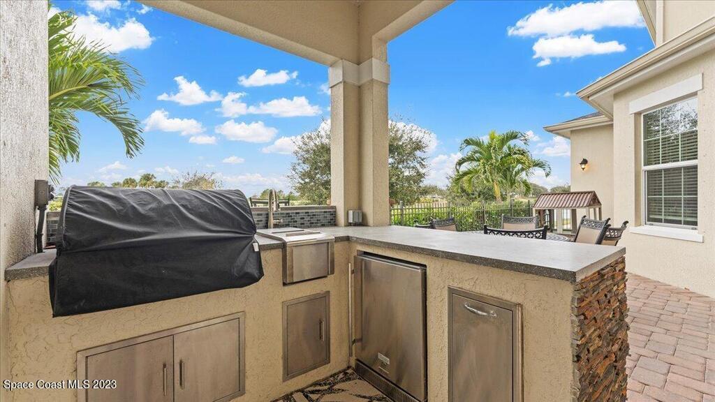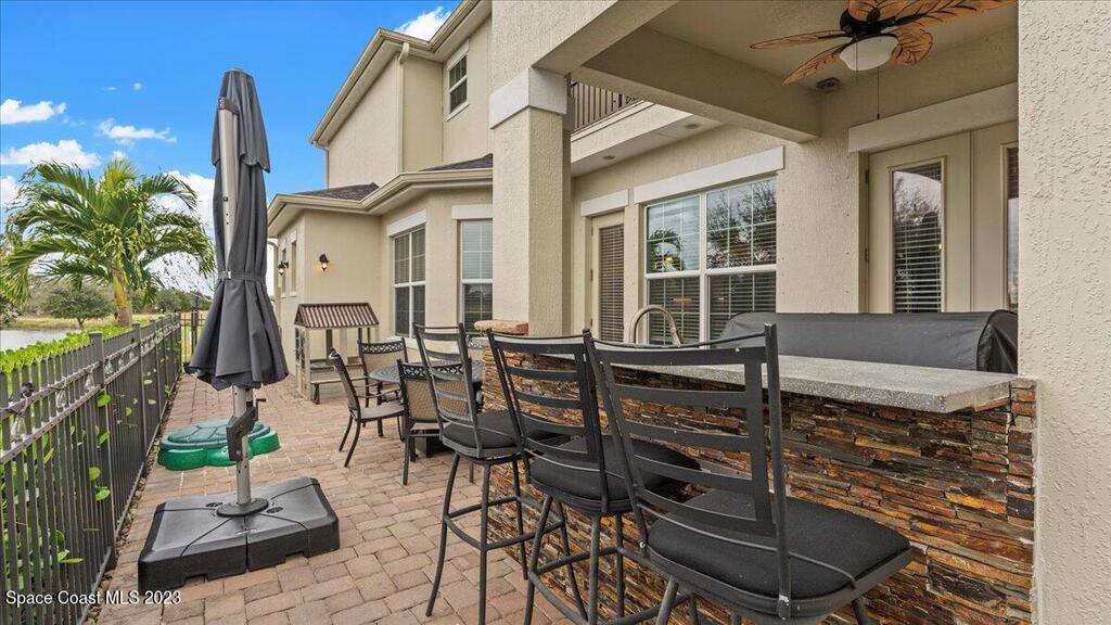 ''MOTIVATED SELLER'' Beautiful open courtyard Merida plan with one of the nicest lots in Arrivas Village! Enjoy beautiful sunset, water & golf course views from your ample courtyard & master balcony. Downstairs offers a spacious kitchen & dining area designed to entertain while the airy great room and 4th bedroom have glass french doors leading you onto the courtyard. A newly added summer kitchen completes your outdoor space with bar top seating, gas grille, fridge & sink. Above the garage is a huge bonus room with wet bar currently being used as a game/movie room. As you proceed up the front stairs you will find two bedrooms that provide ample storage with a jack-n-jill bath & laundry room. The master bedroom offers a balcony, his & her closets and bath with tub, shower & separate vanity. Hoa fees includelawn/landscape maintenance, community pool, dog park, tot lot & exterior painting. Arrivas Village is located in epicenter of Viera which allows you to walk or cart to shopping,